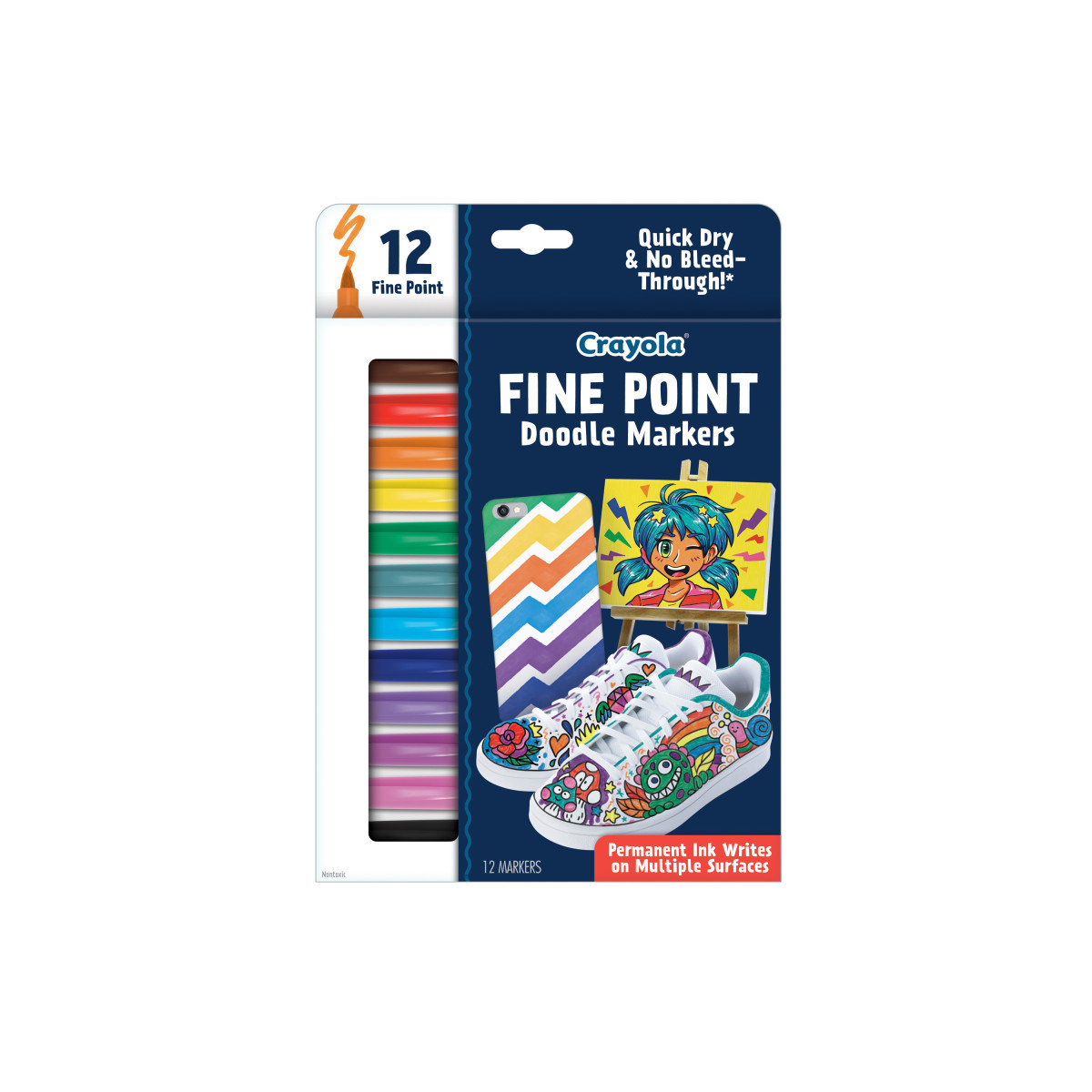 Define each and every detail of your next work of art with the Crayola Fine Point Doodle Markers. They are perfect for fine details and doodles, offering intense permanent ink that won't smudge or bleed through! Use them to practice creative lettering, detail handmade cards, decorate notebooks, bullet journal, and so much more. Whether you are stocking up on school supplies or replacing your marker set at home, these permanent markers are intended for aged-up artists. Pair them with coloring books for a bundled birthday gift. They are ideal for teens and adults, but safe for ages 8 & up. Each pack includes 12 markers.