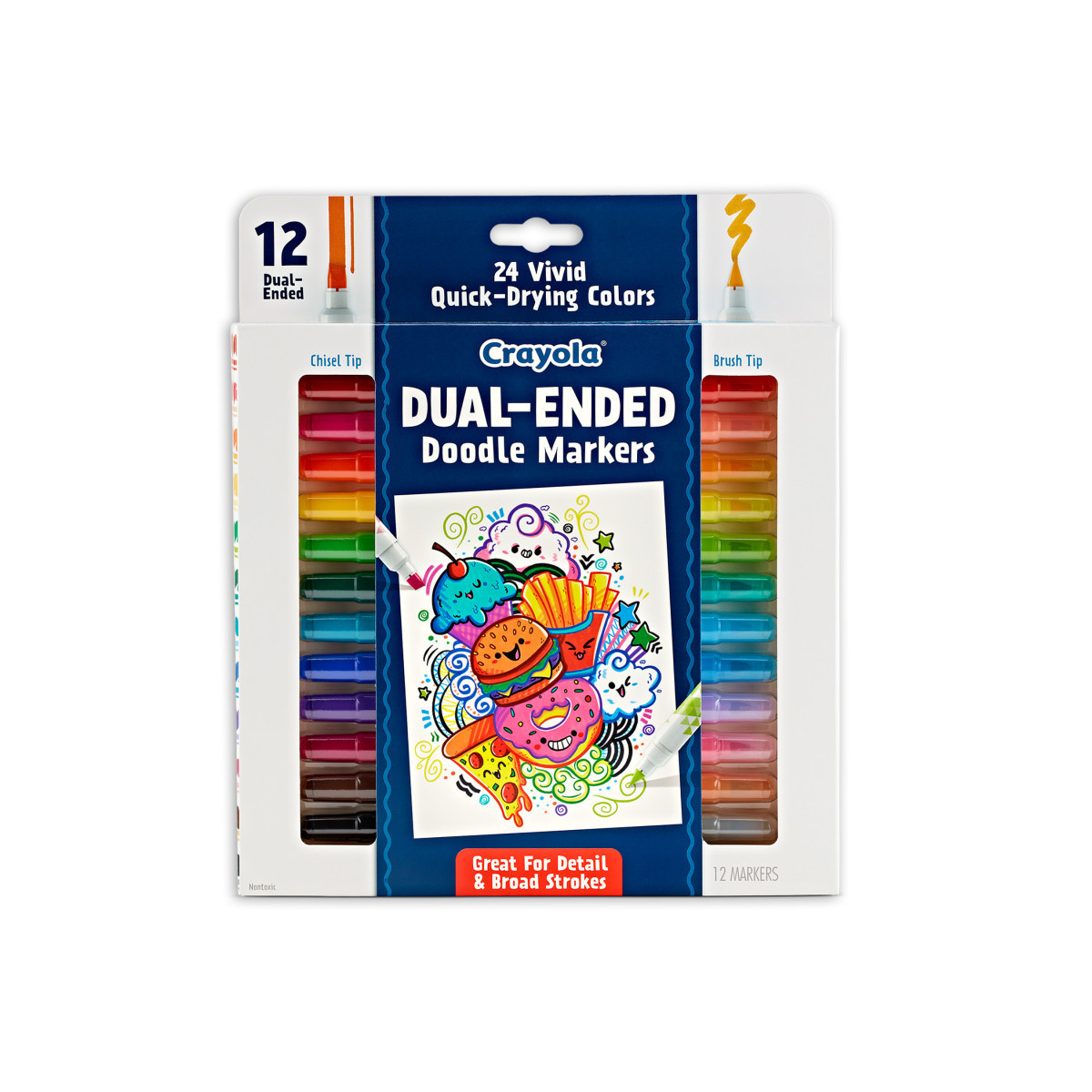 Create with definition, thanks to a tool that offers twice the level of detail and twice the color. Each of the Crayola Dual-Ended Markers feature two colorful tools in one! Create wispy watercolor-like areas of color with the brush marker end and thick or thin lines with the chisel tip end. These Crayola markers make a great gift for teens with an interest in creative lettering, as well as those who just want to experiment more with their art markers. These markers are ideal for teens and adult coloring enthusiasts, but are safe for ages 8 & up. Each pack includes 12 markers, giving you 24 colors total.