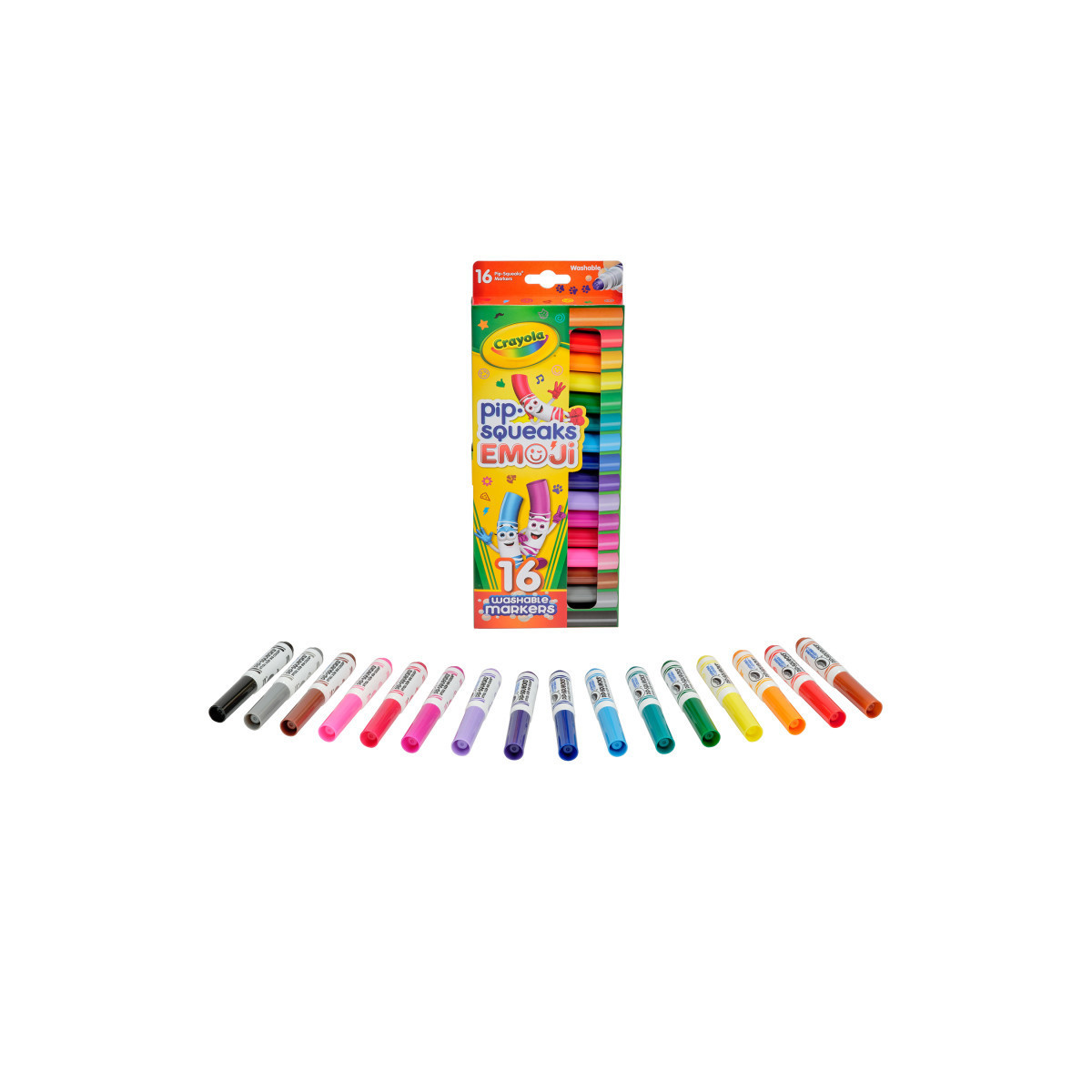 Get ready to stamp it out! Take your emotion icons from the screen to the page with portable Pip Squeaks Marker Stampers! These mini markers are packed with color, perfectly sized for small hands, and great for coloring books, crafts, school projects, and more! Just stamp them down on the paper to embellish your artwork with 16 cool emotion icon designs. Plus, this washable marker set washes from skin, as well as most furniture and washable clothing. Pair this set with Crayola Construction Paper (sold separately) to get started creating today! Safe and nontoxic for beginner artists, these kids markers make a great gift for girls and boys, ages 3 & up! Each pack includes 16 stampers.