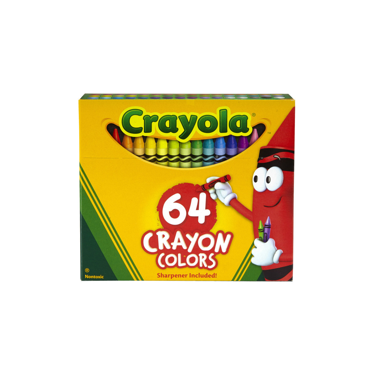 - Features 64 Crayola Crayons in a flip top box