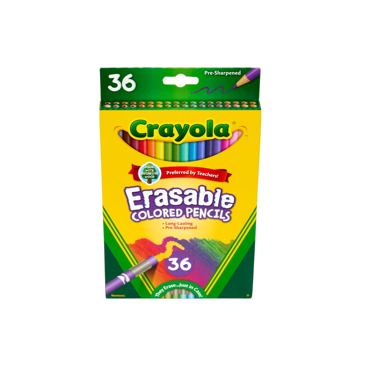ERASABLE ART: Crayola Erasable Colored Pencils are a great tool for kids. 36 pre-sharpened colored pencils with erasers let kids redo drawings or correct mistakes. Brightly colored lines are perfect for school projects and creating detailed artwork.
