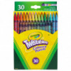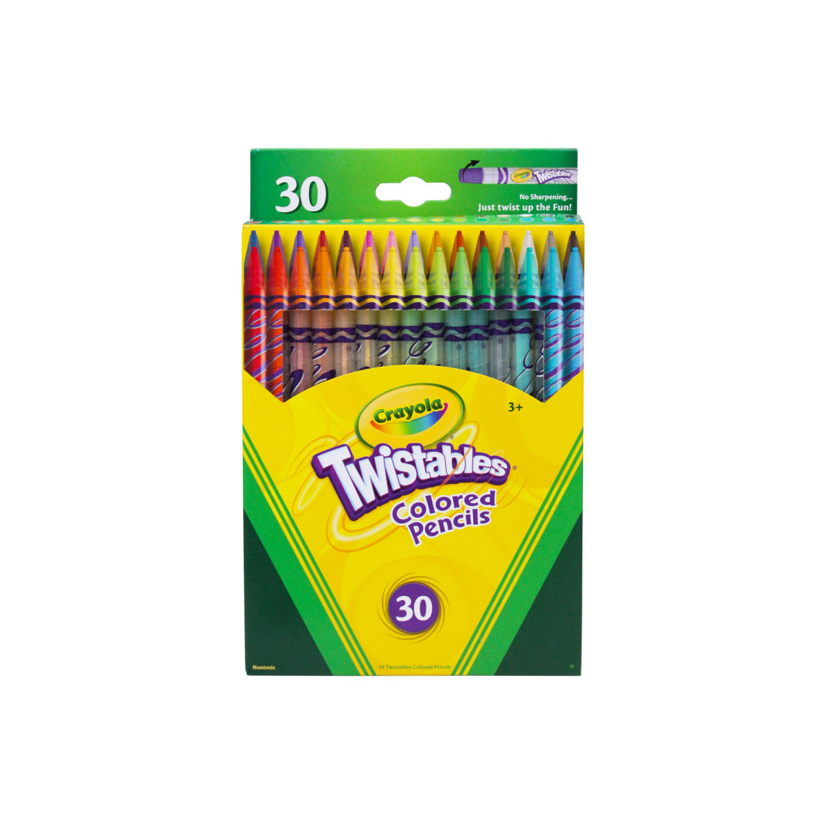 Kids can never have enough colors. With this set of Twistables™, young artists can fully express themselves with the wide variety of 30 different hues. Whether they're using the 2mm pencil lead to draw intricate line art or blend colors in a sunset, kids will have all the colors they need to create vibrant illustrations. The fun twistable barrels are designed to keep you coloring without interruption. When your pencil tip starts to disappear, just twist up the plastic barrel for more. You'll never need an external pencil sharpener. A sturdy plastic barrel protects the pencil inside, so you never have to worry about coloring too hard and breaking your art tools. The barrel is clear so you can always tell exactly how much color you have left. It also preserves your colored pencils when you store them. Just twist the pencil tips back down and pack them away with your other art supplies. Each pack includes 30 Twistables™ Colored Pencils.
