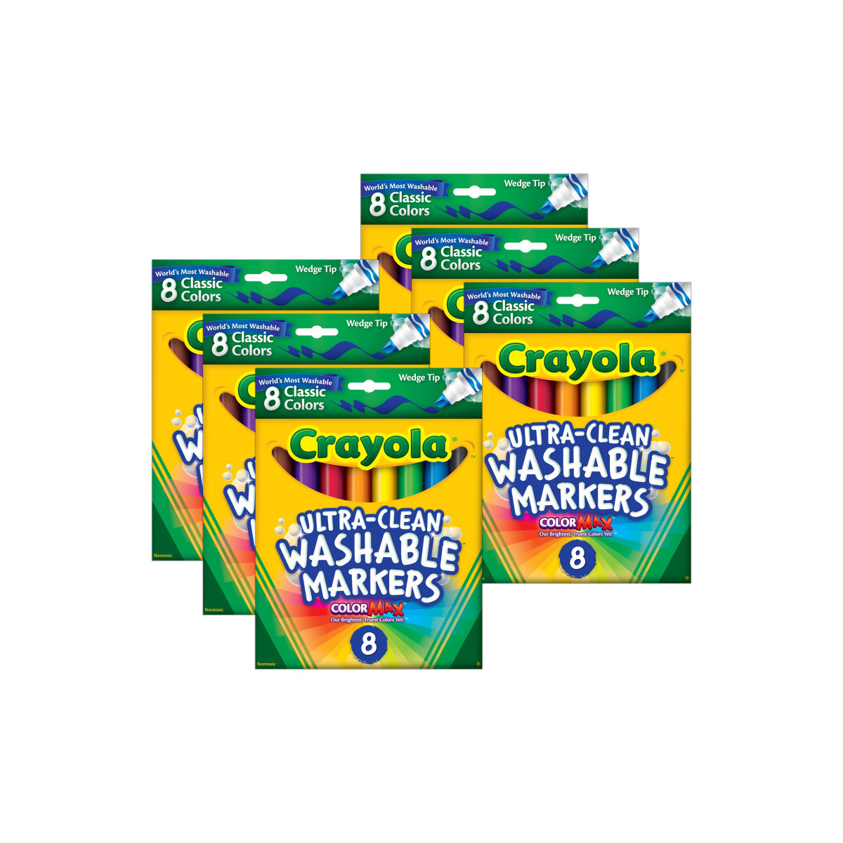 Classic Markers provide artists with classic Crayola colors that feature Color Max, our most vibrant color yet. Amp up school projects and artistic endeavors with high-quality ink that is true to color. The variety of bright colors in this pack invites imaginative expression. Crayola Markers contain recycled resin, which puts over a million pounds of plastic back to use. Bring beauty and color to your world and help keep plastic out of landfills. Each pack includes 8 Ultra-Clean Washable Markers in classic colors and peggable box. Sold as 6 packs for a total of 48 markers.