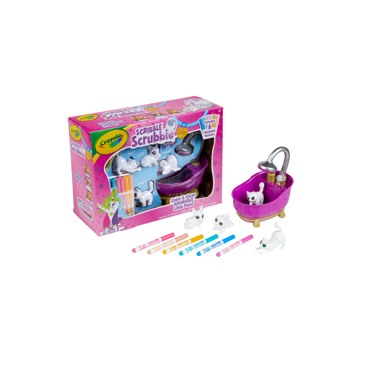 SCRIBBLE SCRUBBIE PETS: Splish splash in the bath with the Scribble Scrubbie Pets Tub 2.0! Set aside your traditional coloring books and choose a pet to color instead with 6 Washable Markers for kids