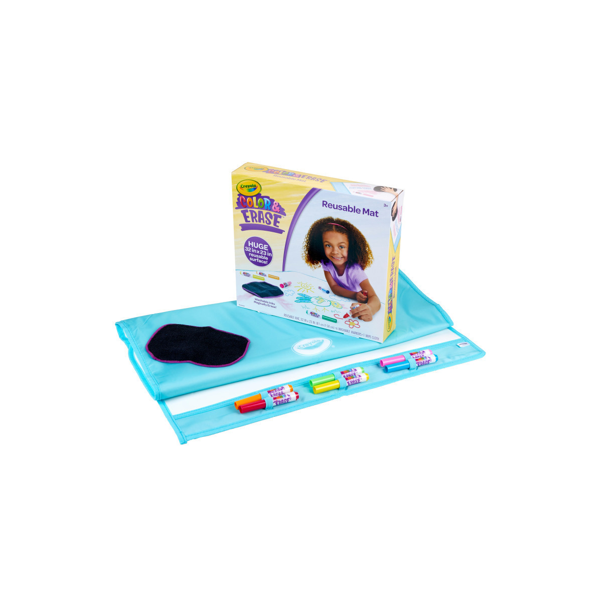 The Crayola Color & Erase Mat offers kids a giant and reusable drawing space for hours of creative and colorful play. The large surface is big enough to let multiple young artists color at the same time! When color and play time is over just swipe away art with a damp cloth. The Color & Erase Mat includes storage for the included washable markers and wipe cloth. Simply pack up the tools, roll up the mat and you're ready take creativity on the road! Features a Giant 32" x 23" Reusable Drawing Mat, 6 Washable Markers, and 1 Wipe Cloth. This coloring set makes a great holiday or birthday gift. Safe and nontoxic, ideal for kids, ages 3 & up.