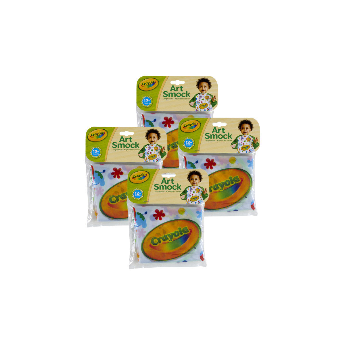 Set your little artist free to create with color without the worry of coloring on their clothes. The reusable My First Crayola Art Smock includes elastic cuffs with sleeves and adjustable Velcro straps for a universal fit and easy clean up. For 12 months and up. Sold as a pack of 4 washable art smocks.