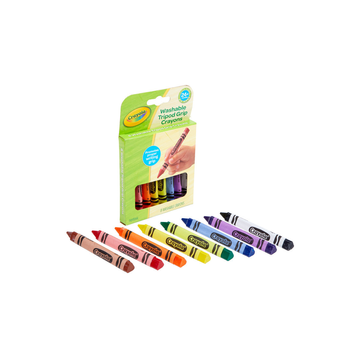 These Ultra-Clean Washable crayons are perfect for the beginning artist. The triangular shape is easy to grasp while guiding little fingers to a proper writing grip. Plus, the triangular shape prevents crayons from rolling away and getting lost. Includes 8 different crayon colors that are formulated for easy clean up. For 24 months and up.