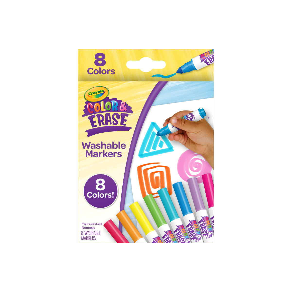 Introducing the Crayola Color & Erase Marker Refill Set! This vibrant band of 8 Color & Erase Washable Markers promises to catapult your Crayola Color & Erase activity sets into the colorful cosmos of creativity (Color & Erase Pads and Paper sold separately). Dive into a world of color with Crayola Color & Erase Markers - where drawings come to life and clean up is a breeze! These markers are about more than making marks; they're your ticket to a mess-free masterpiece. Whether it's stray marks on skin, clothes, or walls, a simple swipe with a damp cloth can wipe the slate clean. Crayola Color & Erase is the ultimate travel companion, keeping kids engaged and imaginative while on the go. Pair this refill set with a Color & Erase Activity kit for an unforgettable gift for kids. Safe, non-toxic, and perfect for budding artists aged 3 and up.