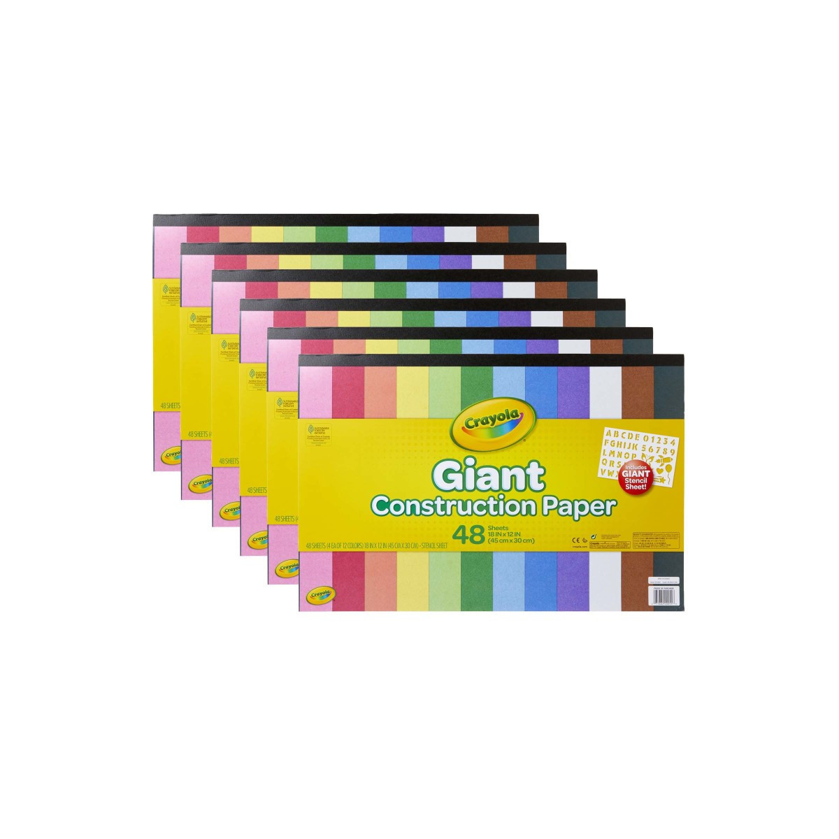 School projects and homemade crafts are made brighter with this Giant Construction Paper & Stencil set from Crayola. Give kids simple-to-use art tools and the space they need to create, and watch their imaginations soar. Sheets measure 12" x 18". Each pad includes 6 sheets of each color including pink, red, orange, yellow, green, blue, white, and black. Each pad also includes an extra-large stencil that helps kids to draw with clean lines. Sold as a pack of 6 construction paper pads.