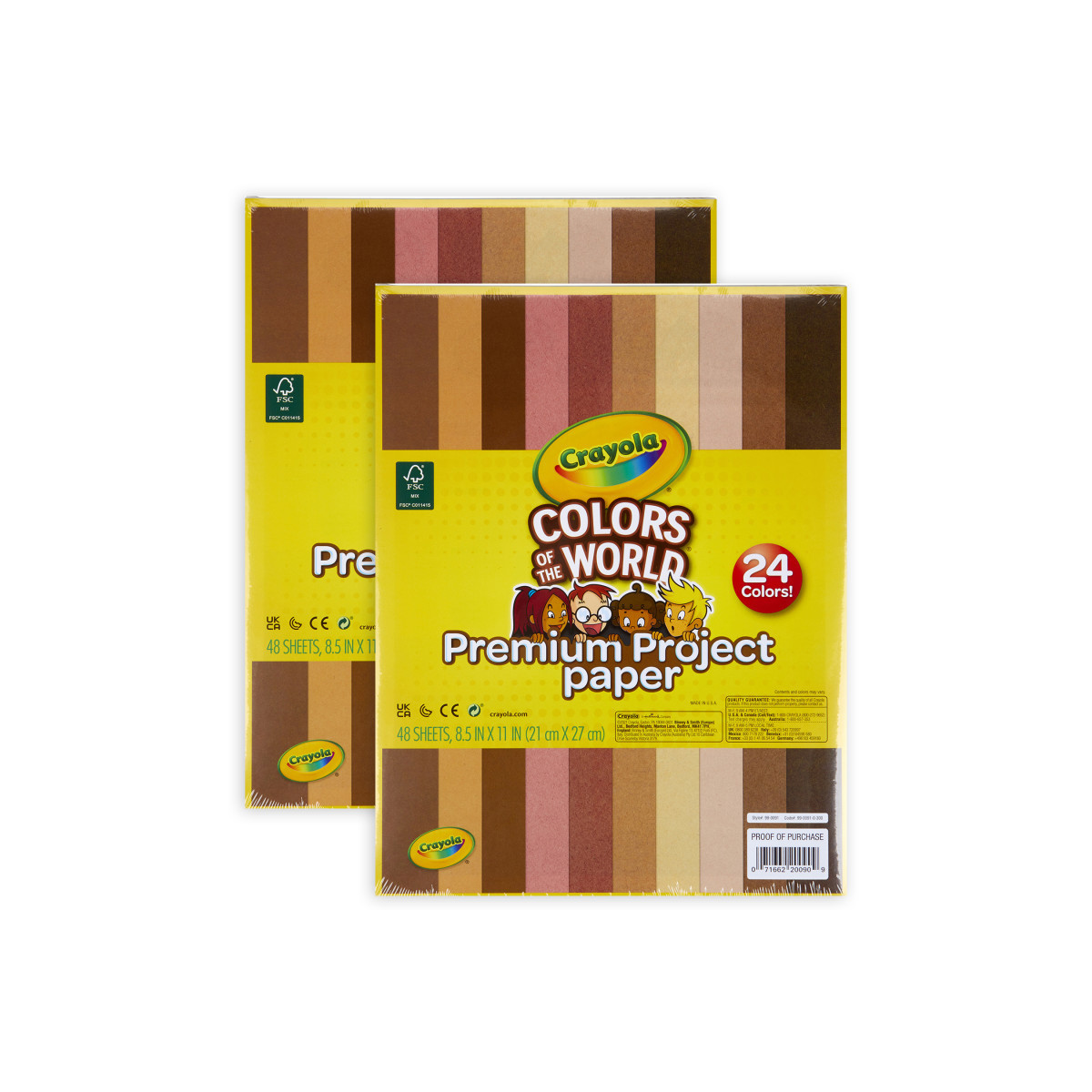 Calling all Crayola Colors of the World fans! This Crayola Construction Paper gives you the perfect color variety to pair with your favorite Colors of the World Crayons, Markers, and Colored Pencils (sold separately)! Each sheet of smooth, fade-resistant, premium construction paper uses longer and stronger fibers to create a heavyweight, high-quality surface finish. Not only does this mean longer-lasting works of art, it's also easy to fold, cut, score, and curl while resisting cracking and tearing. Plus Colors of the World Construction Paper colors are great for school projects and crafts at home! Each 8-1/2" x 11" sheet gives kids and adults the perfect creative space to express themselves! Each pack includes 48 sheets: 2 each of the 24 colors. Sold as 2 packs for a total of 96 sheets.