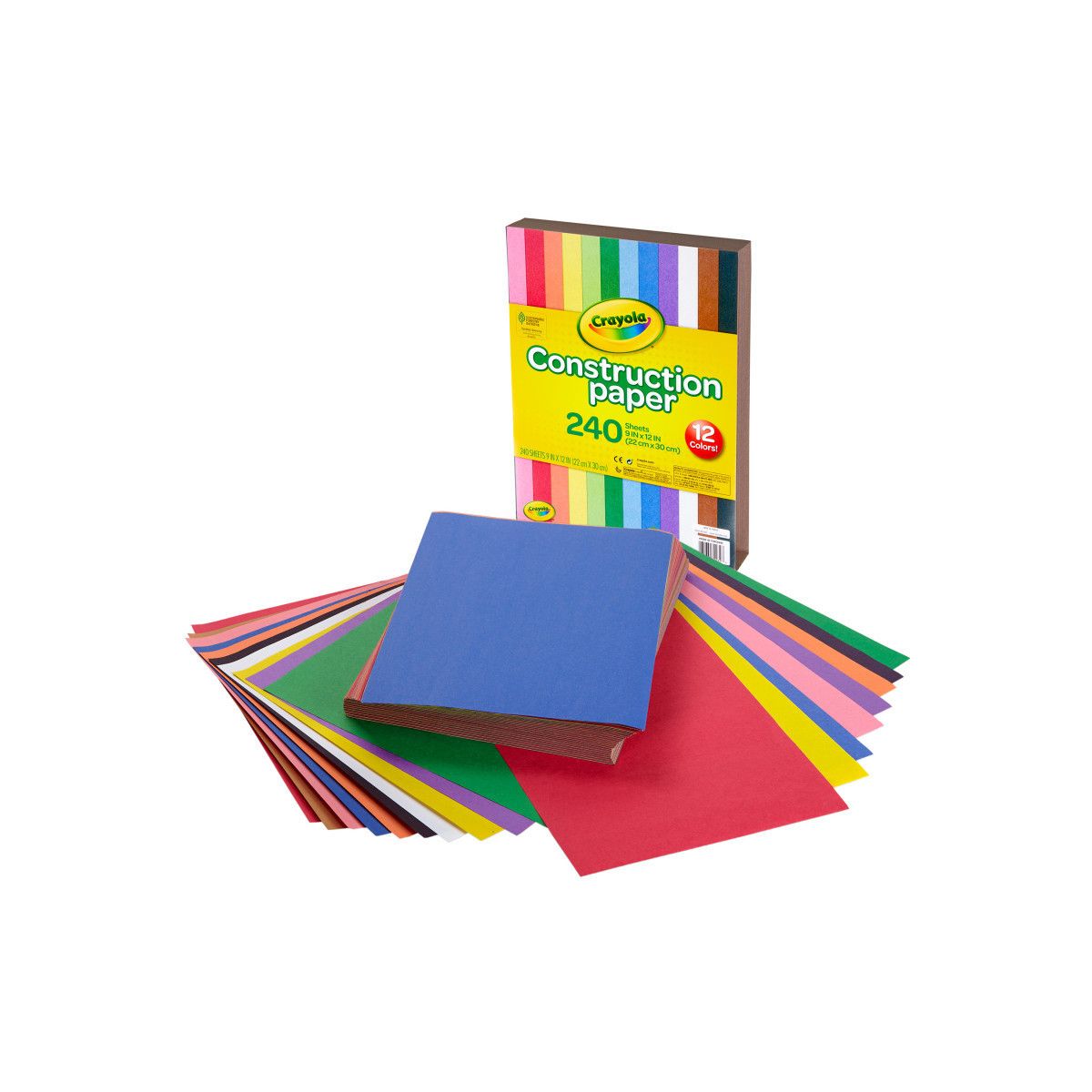 Crayola Construction Paper is a must-have for home and school projects. Each pack includes 240 sheets of construction paper in standard 9x12 paper size. There are 12 different colors including: Pink, Red, Orange, Yellow, Light Green, Green, Light Blue, Blue, Violet, White, Brown and Black.