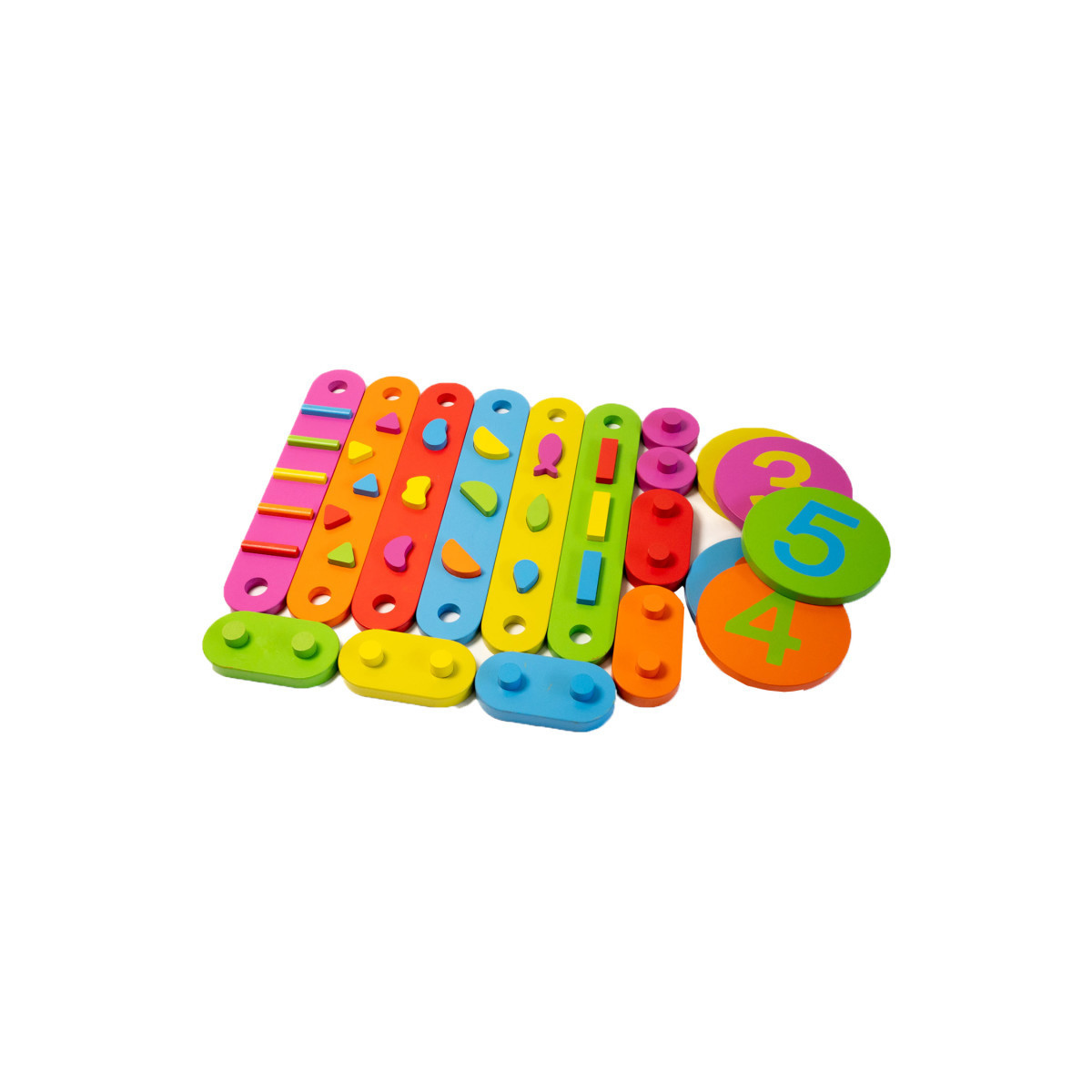 Encourages cognitive development by adding a number component. Children can experiment with matching colors, pattern making, and recognizing shapes.