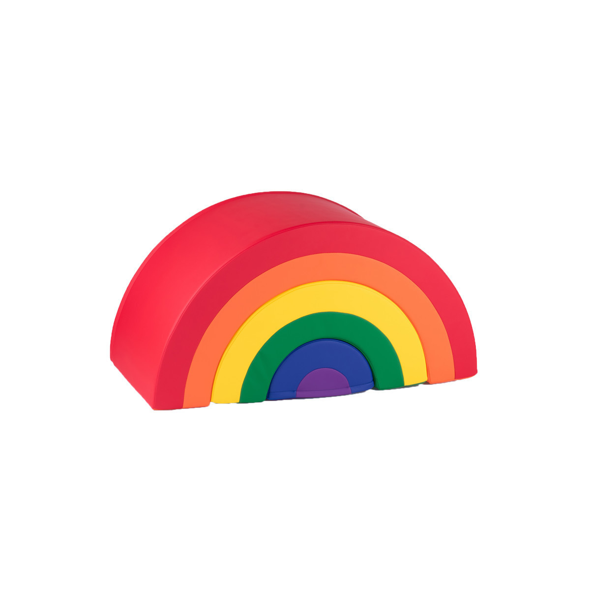 The rainbow arch trio features 3 semi circle soft play pieces that fit into one another to form a rainbow arch. The beautiful set is constructed from vegan leather and dense foam. It is easy to sanitize and wipe down. The colors were specifically chosen to stimulate young, active minds. It can be used at home, in daycares, or young childhood education centers. This set will encourage toddlers to reach their developmental milestones. Children will enjoy climbing over it, under it or taking it apart and putting it back together. They may use it in an obstacle course and can rock on it when turned upside down. Such movements improve core strength and stability. It provides a multisensory experience as it incorporates touch, movement, and visual perceptual integration.