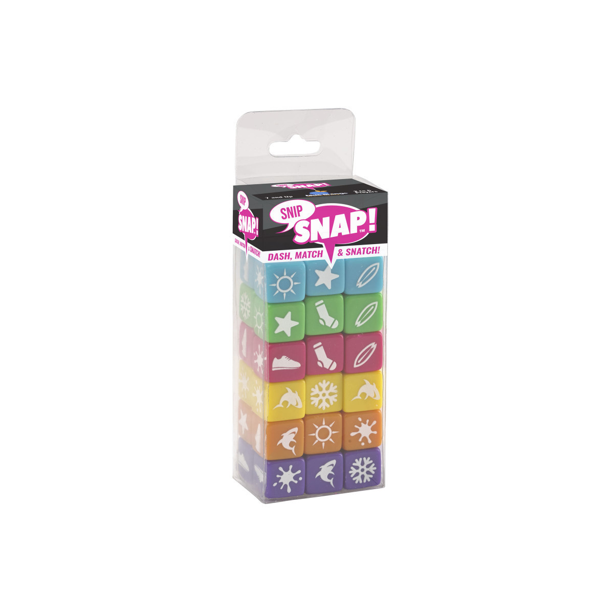 Snip Snap! Is the fast action dice matching game that will get your head spinning! Roll the dice and race to be the first to find a match between your dice and your opponents' dice. See two sharks? Call out "Shark Snap!" and snatch them fast to win!