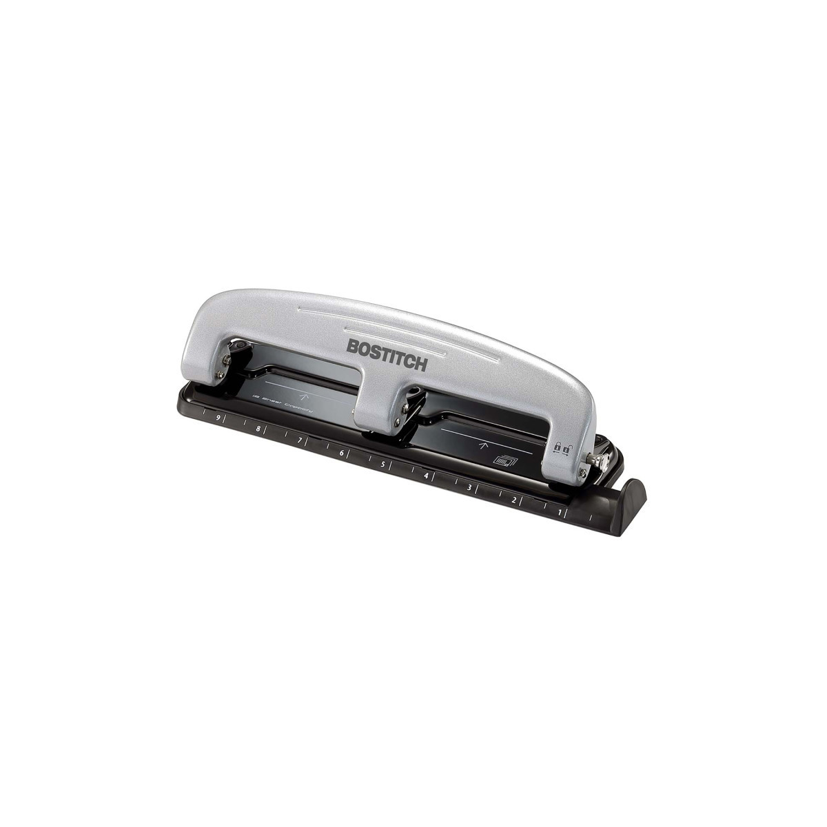 Here at Bostitch, we’re confident this silver 3-hole punch will impress. With its easy-to-squeeze design that requires a whopping 50% less effort, it also boasts an adjustable paper guide and integrated ruler for quick, precise measurements and hole placement. Don’t sweat about jamming this unit – the No-Jam™ technology avoids these issues and ensures smooth operation. This silver three-hole punch is stylish enough to display on any desktop. In fact, we think the sleek and simple look is quite inviting. No room on your desk? No problem! Simply use the handle lock to compress the unit and store it in any space. It’s handy for any project or binding task. For desktop protection and slippage, the non-slip base is ultra-convenient. Still not impressed? See the beauty for yourself today!