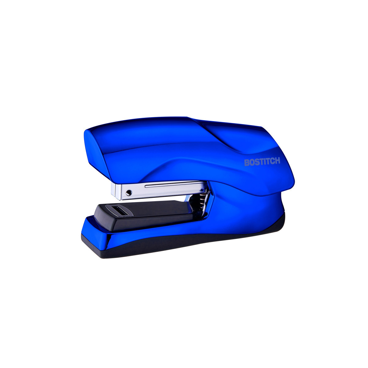 This metallic blue flat clinch stapler features a half strip design while retaining all the stapling power of a heavy duty, full-sized stapler. This stylish and trendy stapler can also staple up to 40 sheets of paper at once! Most standard handheld staplers can only handle 20 sheets at a time. This unit also features a convenient flat clinch stapling style. Flat clinch staplers allow documents to lay in flatter, neater stacks. You can keep your papers organized and your desktop clean with the help of this compact stapler. Perfect for any desk in your home office or business, this lavish blue stapler will be one of the best-looking office supplies around! Additionally, this beautiful stapler opens a full 180 degrees for bulletin board use and features a non-skid, rubber base. Just add your Bostitch standard staples and you're ready to tackle all the stapling and filing projects ahead.