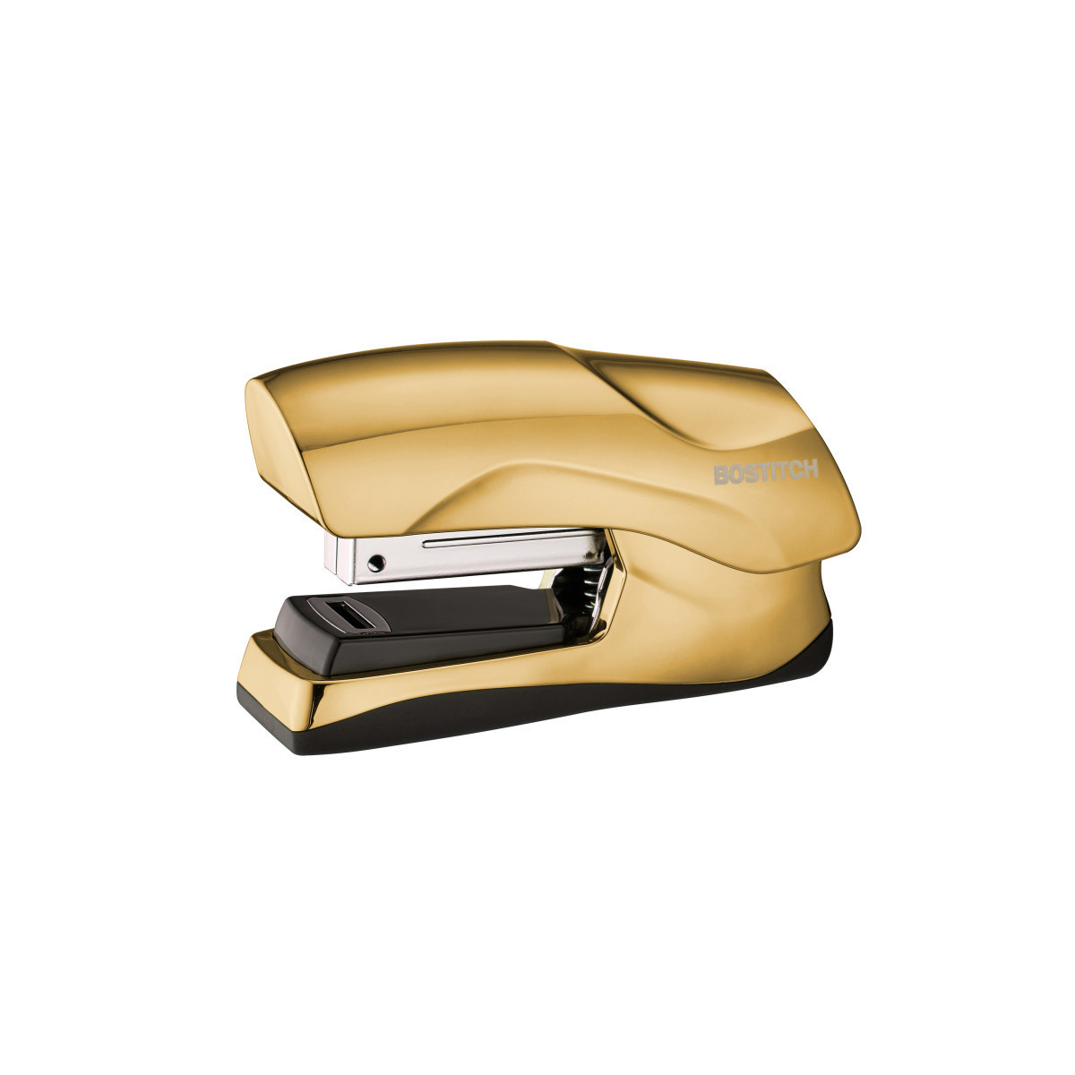 This metallic gold flat clinch stapler features a half strip design while retaining all the stapling power of a heavy duty, full-sized stapler. This stylish and trendy stapler can also staple up to 40 sheets of paper at once! Most standard handheld staplers can only handle 20 sheets at a time. This unit also features a convenient flat clinch stapling style. Flat clinch staplers allow documents to lay in flatter, neater stacks. You can keep your papers organized and your desktop clean with the help of this compact stapler. Perfect for any desk in your home office or business, this lavish gold stapler will be one of the best-looking office supplies around! Additionally, this beautiful stapler opens a full 180 degrees for bulletin board use and features non-skid, rubber base. Just add your Bostitch standard staples and you're ready to tackle all the stapling and filing projects ahead.
