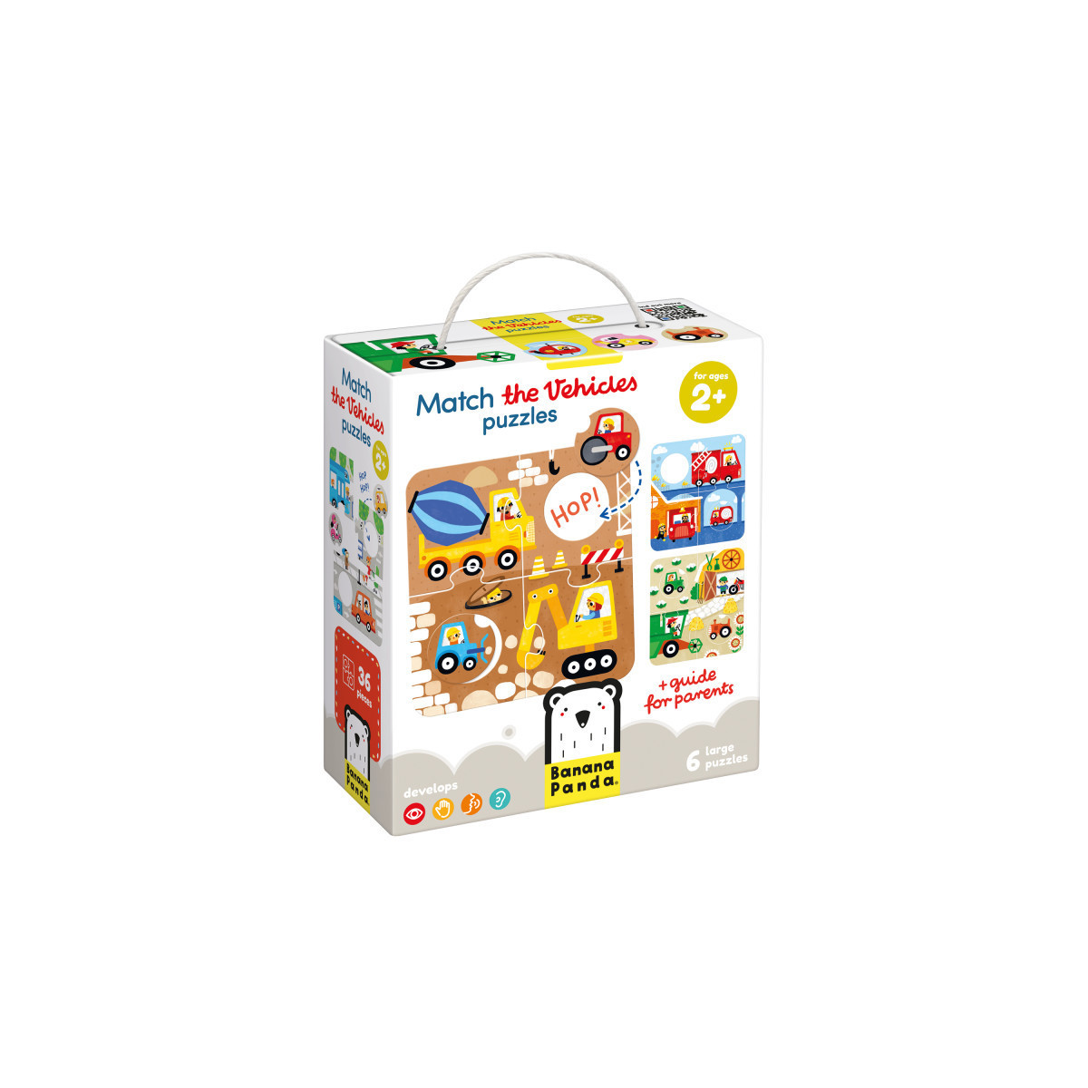 Matching Fun with Vehicles - toddlers put together 6 large 4-piece jigsaw puzzles, then mix and match the circular pieces - a matching game and puzzle set all-in-one