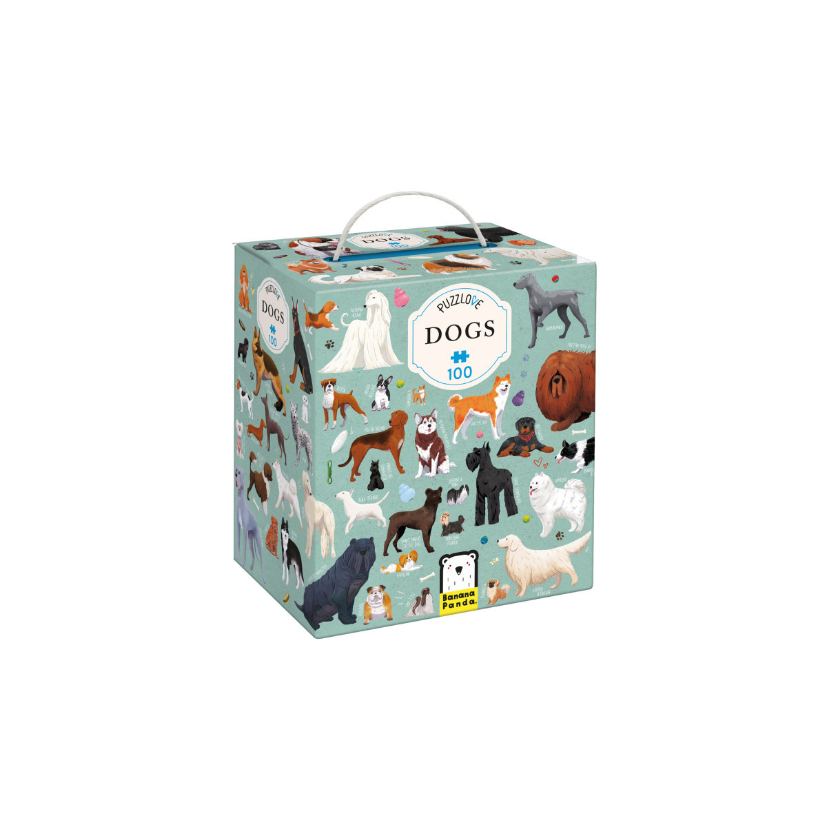 Whoa, whoa! We invite dog and multi-element puzzles lovers to have fun! The large puzzle has 100 pieces and depicts dogs of different breeds. This is a great idea for a puzzle gift for all lovers of quadrupeds. Puzzles Dogs are perfect as a family puzzle. They inspire by a lot of developing activities, they support patience and perceptiveness and they encourage to expand my knowledge. Have fun the way you like! Assembled puzzle measures 19" x 27".