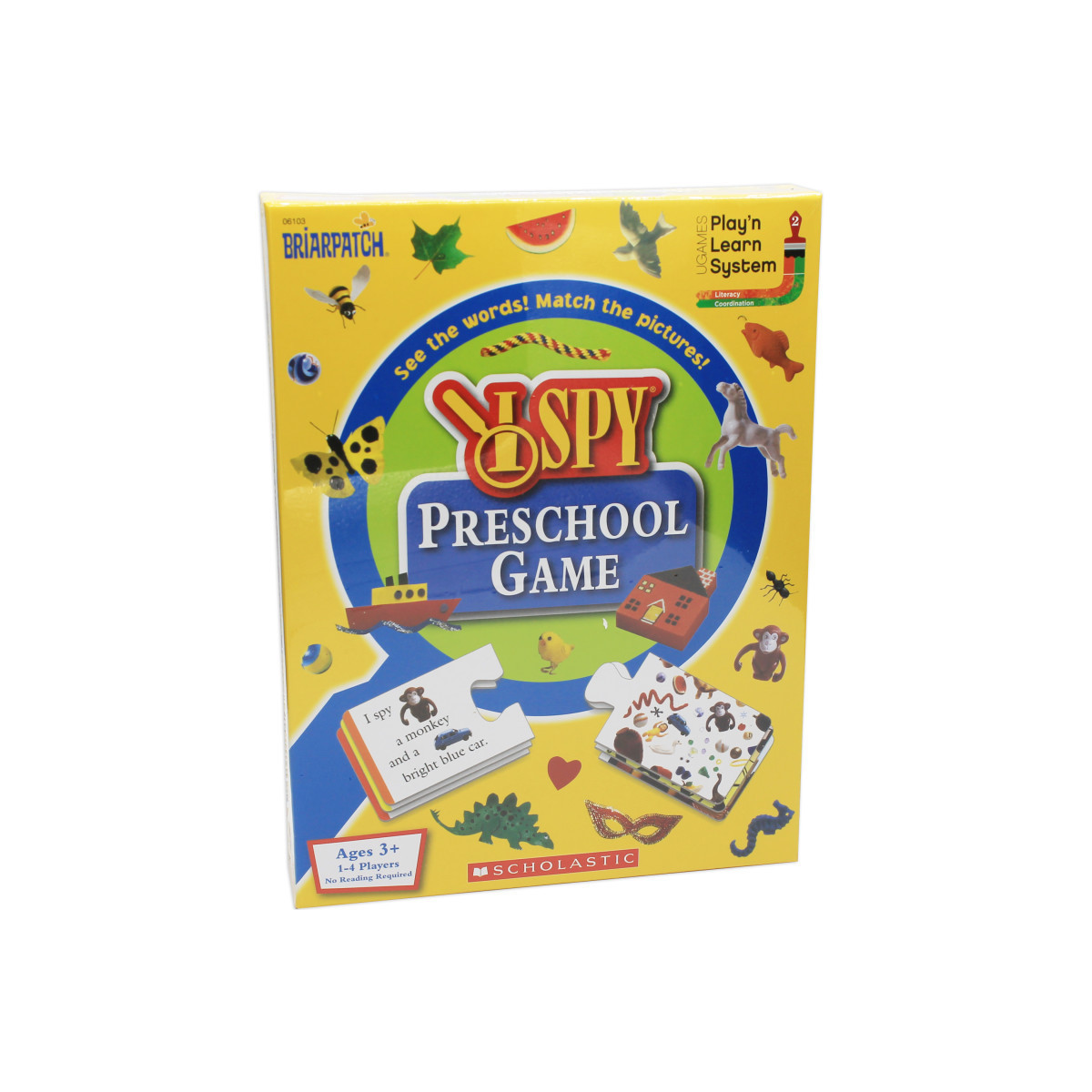 I SPY combines beautiful photographs, familiar object collections and rhyming riddles to create brain teasing puzzles kids and adults can't resist. Our collection of I SPY games and puzzles reinforces these principles in a variety of fun and unique ways. In this game, players match riddles with pictures. Visual clues help to ensure that no reading is required to join in on the fun. There are 3 ways to play, from beginner to advanced. Helps players develop important reading skills. Includes 12 Interlocking Pairs. For 1 to 4 players. Ages 3 and up.