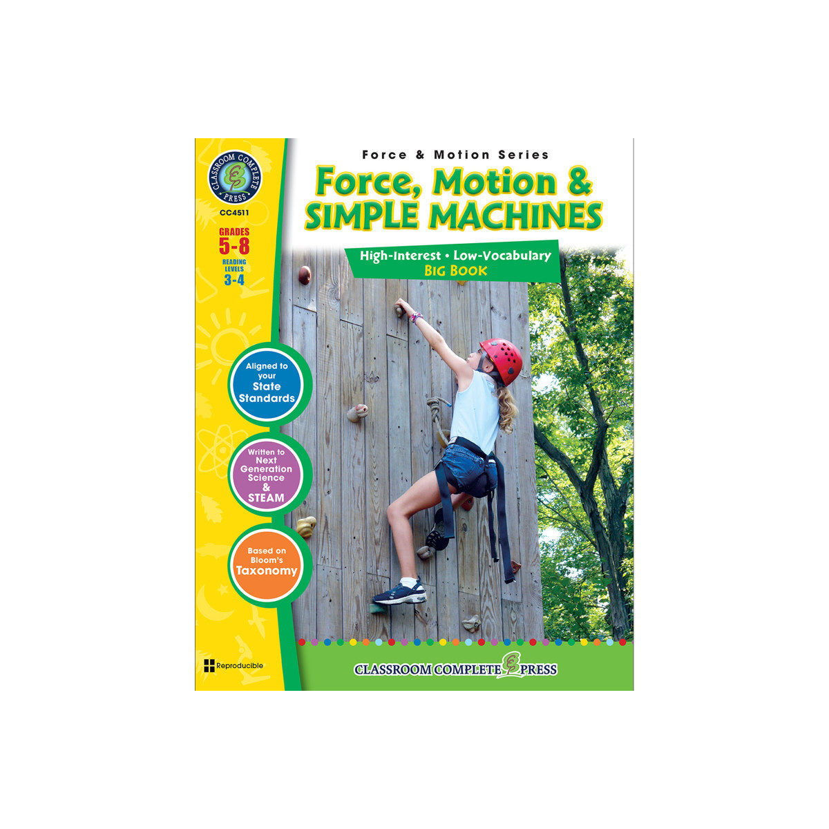 Give your students a kick start on learning with our Force and Motion 3-book BUNDLE. Students begin by exploring different Forces. Conduct several experiments on the force of friction and air resistance. Understand that acceleration and deceleration are examples of unbalanced forces. Next, take the mystery out of Motion. Graph the velocity of students walking home from school at different speeds. Follow directions to find your way using a treasure map. Finally, get familiar with Simple Machines. Conduct an experiment with first-class levers to study distance and force. Find the resistance force when walking up an inclined plane. Each concept is paired with hands-on activities and experiments. Aligned to the Next Generation State Standards and written to Bloom's Taxonomy and STEAM initiatives, additional crossword, word search, comprehension quiz and answer key are also included.