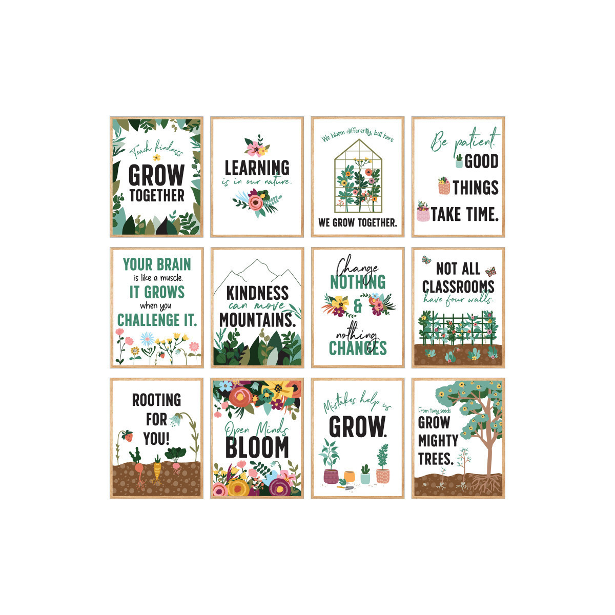 Motivate students year-round with the Carson Dellosa Grow Together Motivational Poster Set—featuring motivational wall art to help inspire and encourage students in and out of the classroom. The colorful décor poster set includes 12 motivational posters with colorful, floral designs and encouraging messages like "Kindness can move mountains", Learning is in our nature", "Mistakes help us grow", and more. Each of the inspirational posters in the classroom themes decoration set measures 11 inches x 8-1/2 inches—the perfect size for wall décor, bulletin board decorations, framed art for office décor or desks, and other visual displays.