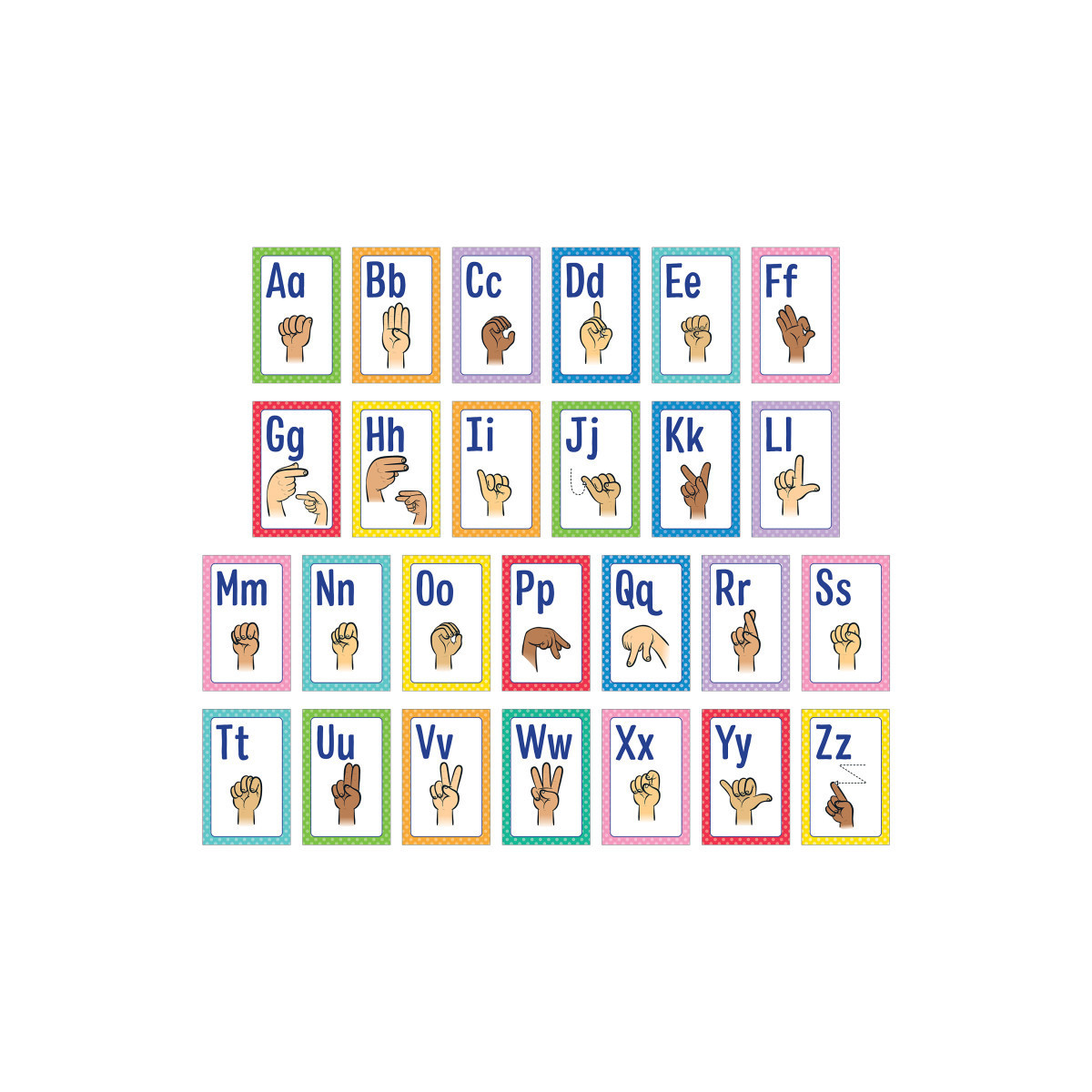 Help students learn and reinforce the American Sign Language alphabet with Carson Dellosa's Sign Language Posters—a great tool for both homeschool and classroom décor. The poster set includes 26 alphabet posters covering every letter of the alphabet and their ASL hand sign to teach students how to sign the alphabet through vibrant illustrations. Each of the alphabet posters measure 5-1/2 inches x 8-1/2 inches—the perfect size for bulletin board, cork board, white board, and wall décor. These sign language posters are great visuals that can be displayed year-round to reinforce letter recognition and signing skills, or simply to decorate your space with inclusive classroom décor. You can even use the alphabet cards as alphabet flash cards for fun, ASL phonics games!