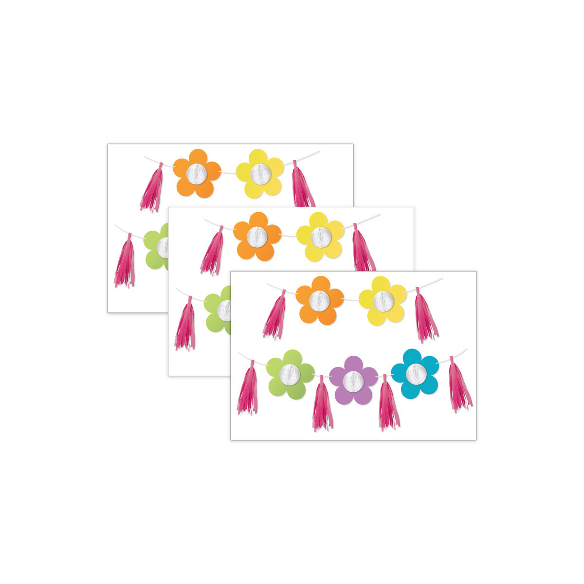String together retro décor for your next party or classroom decorations theme with the Retro Remix Flower and Tassel Bulletin Board Decorations! Each 12-piece bulletin board décor set includes 5 paper flowers (7" in diameter) with honeycomb centers, 6 tassels (6.75"), and 1 string (7') to create bulletin board, white board, cork board, and wall décor with ease. Use the tassels and paper flowers for baby shower and nursery décor, bridal shower and wedding décor, year-round classroom décor, and so much more! Retro Remix, designed by Stephanie and Loreal of @HappilyEverElementary, partnered with Carson Dellosa to bring some fun, retro vibes to your learning environment. Sold as a pack of 3 decor sets.