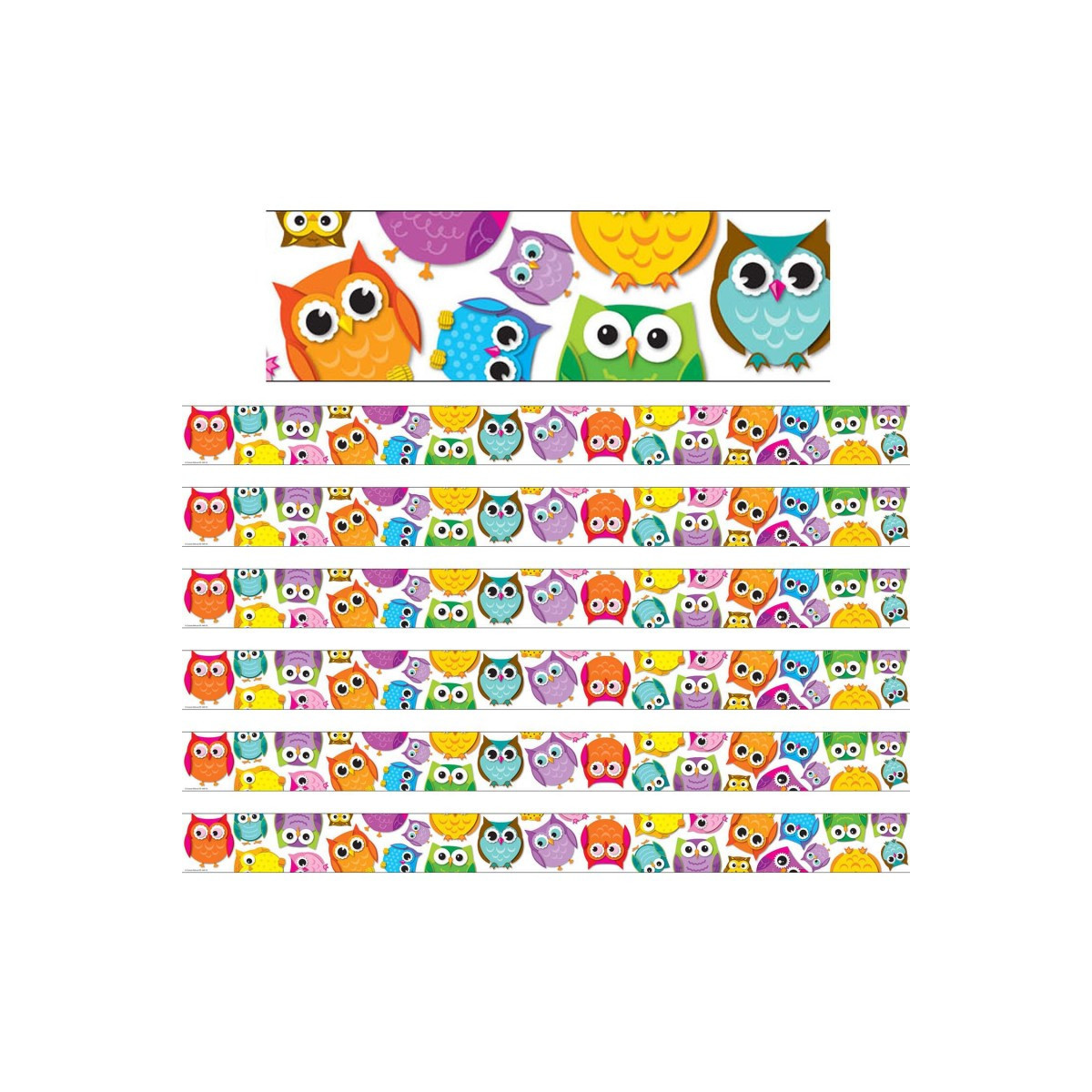 Jazz up your classroom with this colorful straight-edged border! The Colorful Owls design will add energy and playfulness to any class creation, bulletin board, window, locker, or anywhere extra style is needed. Includes 12 pieces for a total of 36 feet. Perfect to use alone or in layers, this border has straight edges for easy use and continuity of design. Look for coordinating products in the this design to create an inviting and contemporary classroom theme! Sold as 6 packs for a total of 72 strips (216 feet).