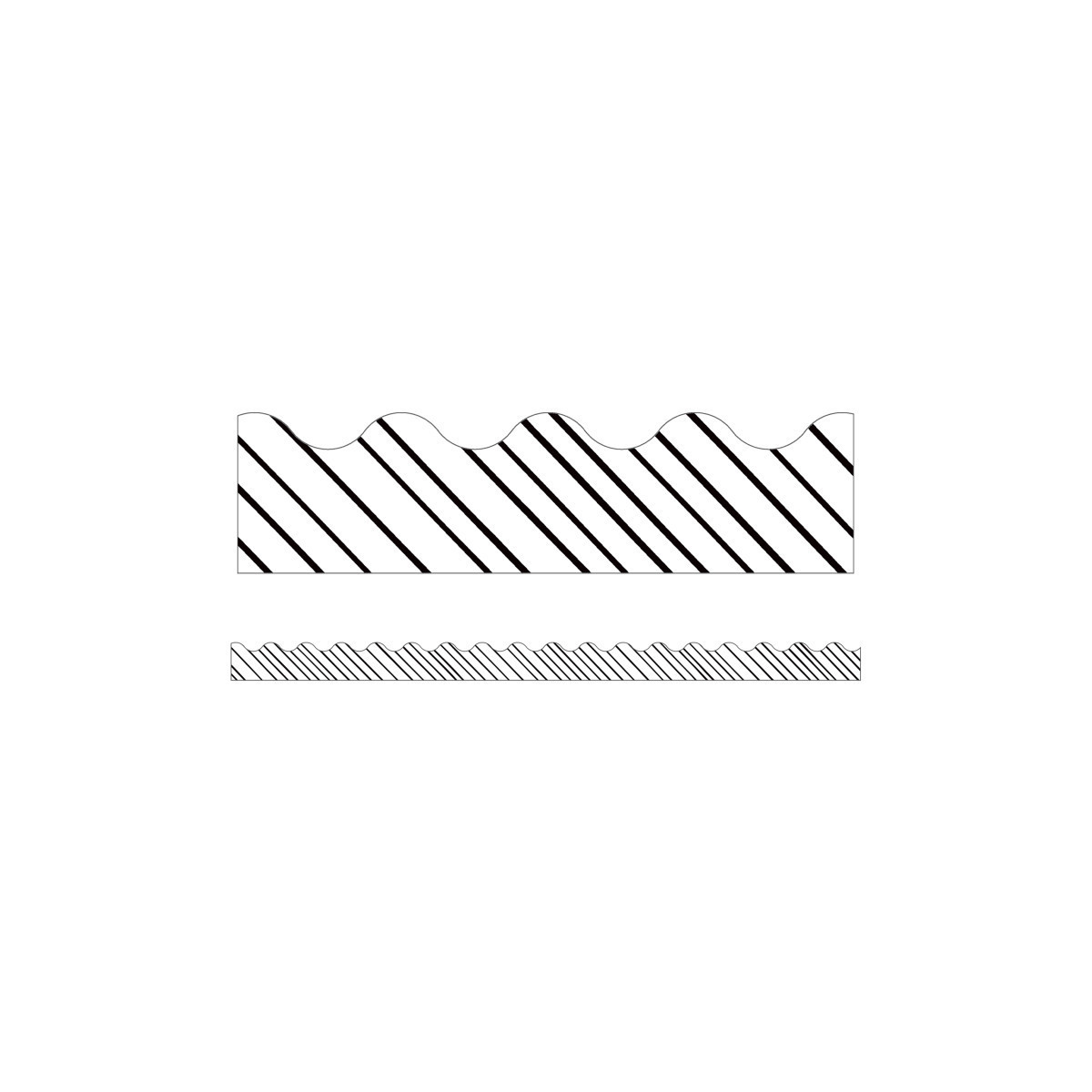 Give your bulletin board displays the perfect finishing touch the Kind Vibes Black & White Stripes Scalloped Borders. The classic design of these scalloped borders will add a fun and festive finishing touch to any display. This pack includes 13 border strips, each measuring 3' x 2.25" for a total length of 39'.