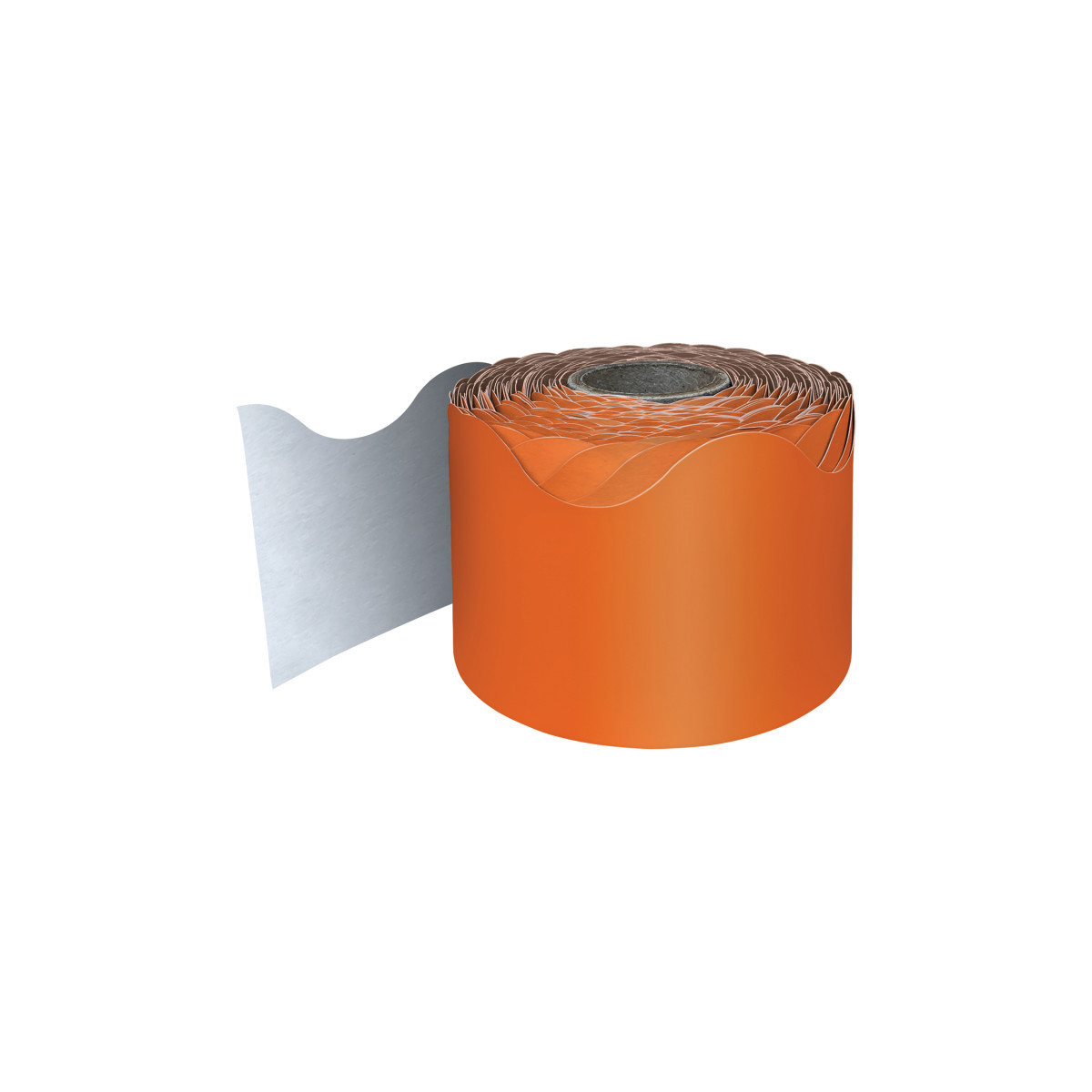 Carson Dellosa's Orange Scalloped Bulletin Board Border brings added style to your classroom, dorm room, party, daycare, or homeschool setting. This set includes one roll of vibrant, orange bulletin board border trim printed on thick but flexible paper that can be used for solo displays or multiple learning visuals. Decorate your learning space with a single layer border, or add layers to create dimension to your displays. This border is also great for holiday decor such as Halloween, Thanksgiving, and other fall-themed decorations. This border is also great as a primary pop of color for any standard visual or decorative display. The rolled border measures 2 1/4 inches by 65 feet to decorate bulletin boards, desks, classroom walls, lockers, and more with ease. For a cohesive theme, check out coordinating Carson Dellosa teaching supplies and classroom decorations. Education happens everywhere, and Carson Dellosa strives to provide the tools needed to inspire learning everywhere it happens.