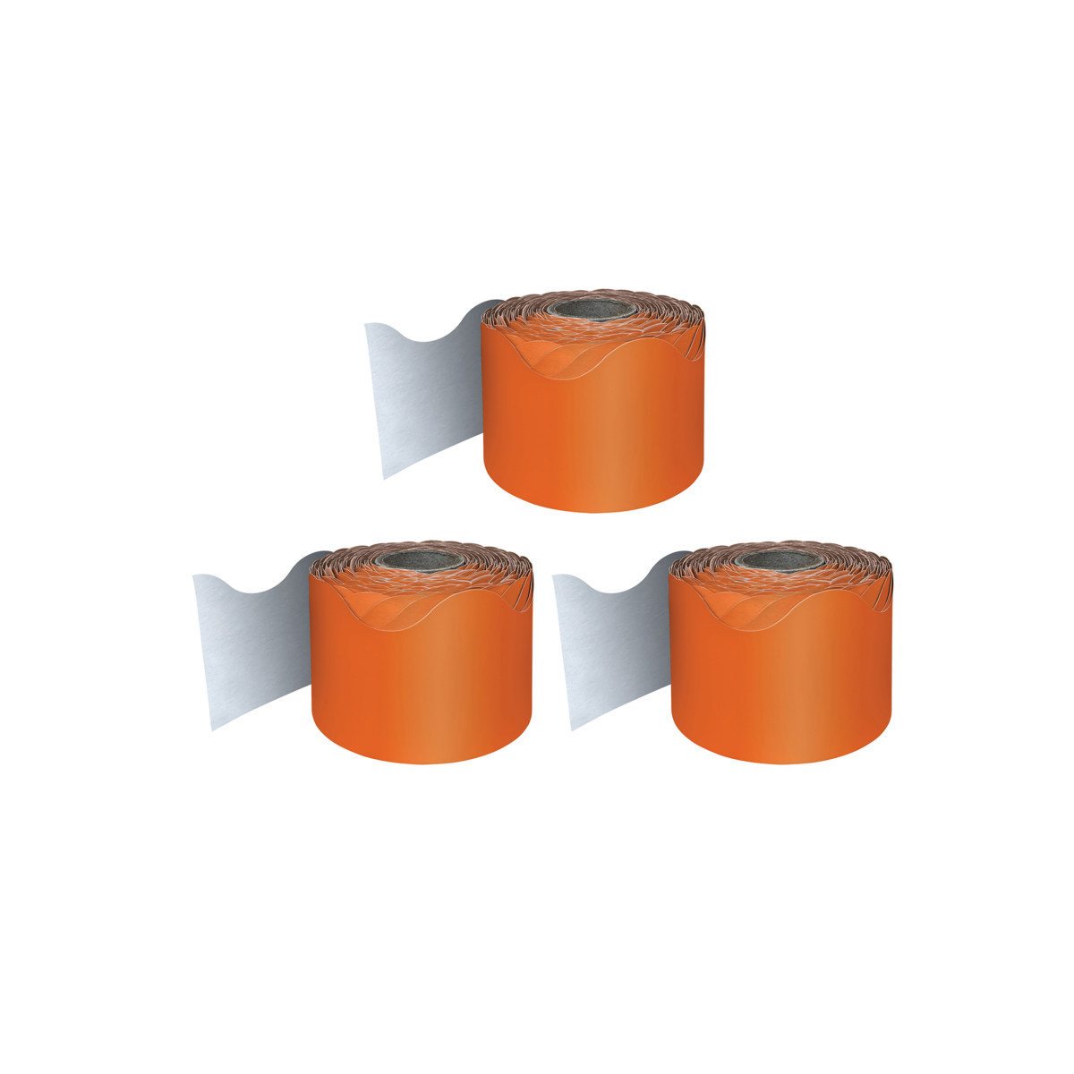 Carson Dellosa's Orange Scalloped Bulletin Board Border brings added style to your classroom, dorm room, party, daycare, or homeschool setting. This set includes one roll of vibrant, orange bulletin board border trim printed on thick but flexible paper that can be used for solo displays or multiple learning visuals. Decorate your learning space with a single layer border, or add layers to create dimension to your displays. This border is also great for holiday decor such as Halloween, Thanksgiving, and other fall-themed decorations. This border is also great as a primary pop of color for any standard visual or decorative display. For a cohesive theme, check out coordinating Carson Dellosa teaching supplies and classroom decorations. Education happens everywhere, and Carson Dellosa strives to provide the tools needed to inspire learning everywhere it happens. Each rolled border measures 2 1/4 inches by 65 feet to decorate bulletin boards, desks, classroom walls, lockers, and more with ease. Sold as a pack of 3 rolls.