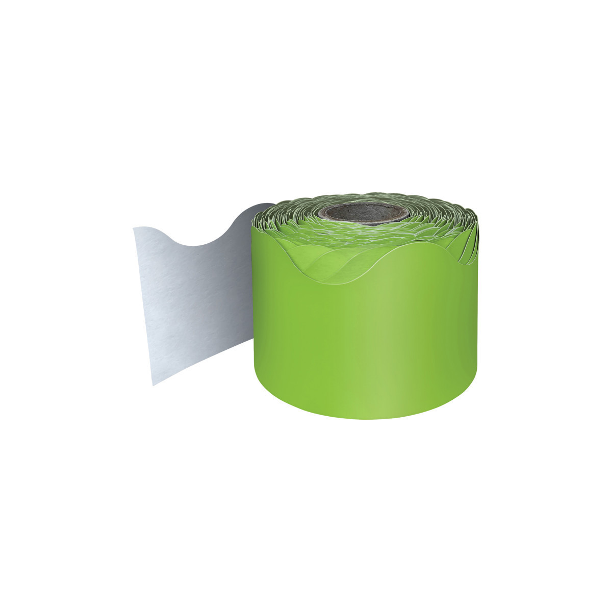 Carson Dellosa's Lime Scalloped Bulletin Board Border brings added style to your classroom, dorm room, party, daycare, or homeschool setting. This set includes one roll of neon, lime green bulletin board border trim printed on thick but flexible paper that can be used for solo displays or multiple learning visuals. Decorate your learning space with a single layer border, or add layers to create dimension to your displays. This border is also great for holiday decor such as Saint Patrick's Day and Christmas accents, as well as for spring or summer-themed decorations. This border is also great as a primary pop of color for any standard visual or decorative display. The rolled border measures 2 1/4 inches by 65 feet to decorate bulletin boards, desks, classroom walls, lockers, and more with ease. For a cohesive theme, check out coordinating Carson Dellosa teaching supplies and classroom decorations. Education happens everywhere, and Carson Dellosa strives to provide the tools needed to inspire learning everywhere it happens.
