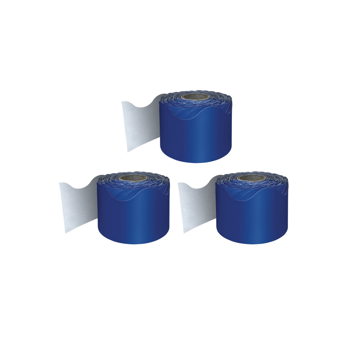 Carson Dellosa's Navy Scalloped Bulletin Board Border brings added style to your classroom, dorm room, party, daycare, or homeschool setting. This set includes one roll of classic, navy blue bulletin board border trim printed on thick but flexible paper that can be used for solo displays or multiple learning visuals. Decorate your learning space with a single layer border, or add layers to create dimension to your displays. This border is also great for patriotic holiday decor such as Fourth of July, Memorial Day, Labor Day, and more. This border is also great as a primary pop of color for any standard visual or decorative display. For a cohesive theme, check out coordinating Carson Dellosa teaching supplies and classroom decorations. Education happens everywhere, and Carson Dellosa strives to provide the tools needed to inspire learning everywhere it happens. Each rolled border measures 2 1/4 inches by 65 feet to decorate bulletin boards, desks, classroom walls, lockers, and more with ease. Sold as a pack of 3 rolls.