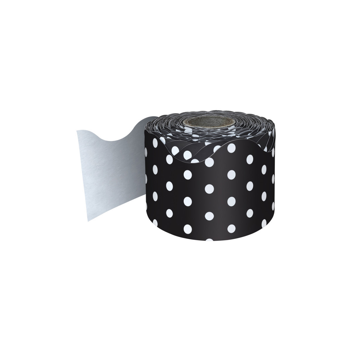 Carson Dellosa's Black and White Polka Dot Scalloped Bulletin Board Border brings added style to your classroom, dorm room, party, daycare, or homeschool setting. This set includes one roll of black and white dotted bulletin board border trim printed on thick but flexible paper that can be used for solo displays or multiple learning visuals. Decorate your learning space with a single layer border, or add layers to create dimension to your displays. The border is great for adding a stand alone pop of color to any standard visual or decorative display. The rolled border measures 2 1/4 inches by 65 feet to decorate bulletin boards, desks, classroom walls, lockers, and more with ease. For a cohesive theme, check out coordinating Carson Dellosa teaching supplies and classroom decorations.