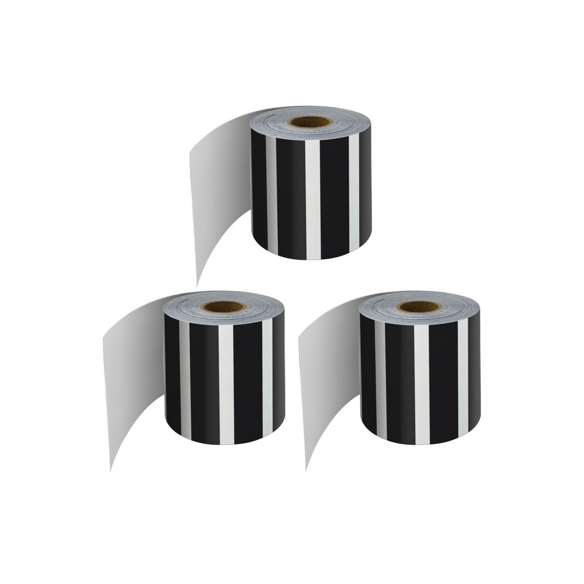 Carson Dellosa's Black and White Striped Bulletin Board Border brings added style to your classroom, dorm room, party, daycare, or homeschool setting. This set includes one roll of straight, classic, black and white striped bulletin board border trim printed on thick but flexible paper that can be used for solo displays or multiple learning visuals. Decorate your learning space with a single layer border, or add layers to create dimension to your displays. The border is great for adding an eye-catching design and pop of color to any standard visual or decorative display. For a cohesive theme, check out coordinating Carson Dellosa teaching supplies and classroom decorations. Education happens everywhere, and Carson Dellosa strives to provide the tools needed to inspire learning everywhere it happens. Each rolled border measures 2 1/4 inches by 65 feet to decorate bulletin boards, desks, classroom walls, lockers, and more with ease. Sold as a pack of 3 rolls.