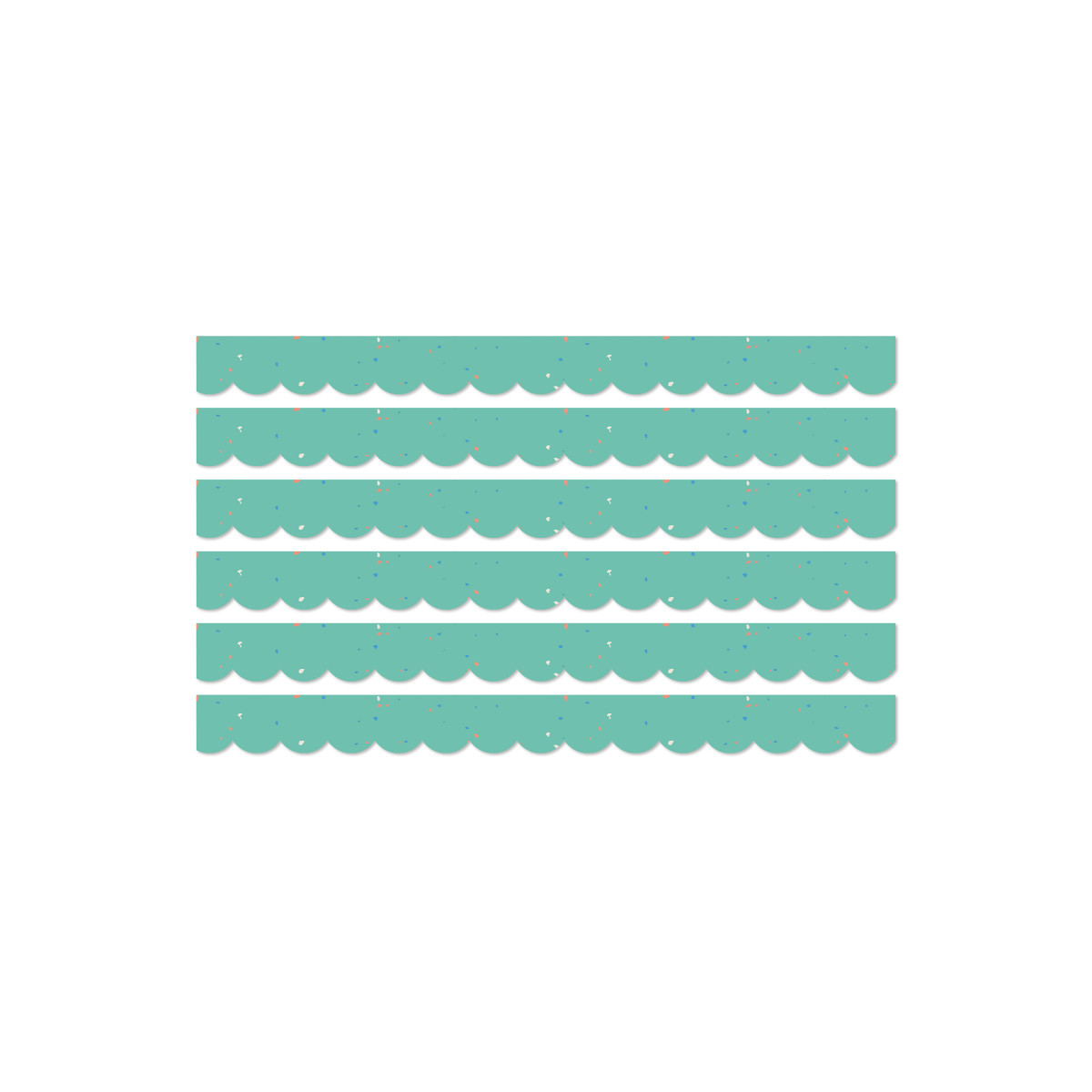 Add colorful classroom decor to your learning space using Carson Dellosa We Belong Boho Speckled Teal Bulletin Board Borders—perfect for bulletin board, white board, cork board, and more. Each teal bulletin board paper set includes 13 strips of scalloped, teal bulletin border with a vibrant, speckled design throughout each strip of border. Each strip of bulletin board border measures 3' x 3" for a total of 39 feet to decorate doors and wall displays, cubbies, chalkboards, and other border needs. Teal blue décor is a great addition to year-round party, black board, and bulletin board decorations, office décor, locker, and blue desk décor, as well as Easter, spring, and summer bulletin board decorations. Sold as 6 packs for a total of 78 strips (234 feet).