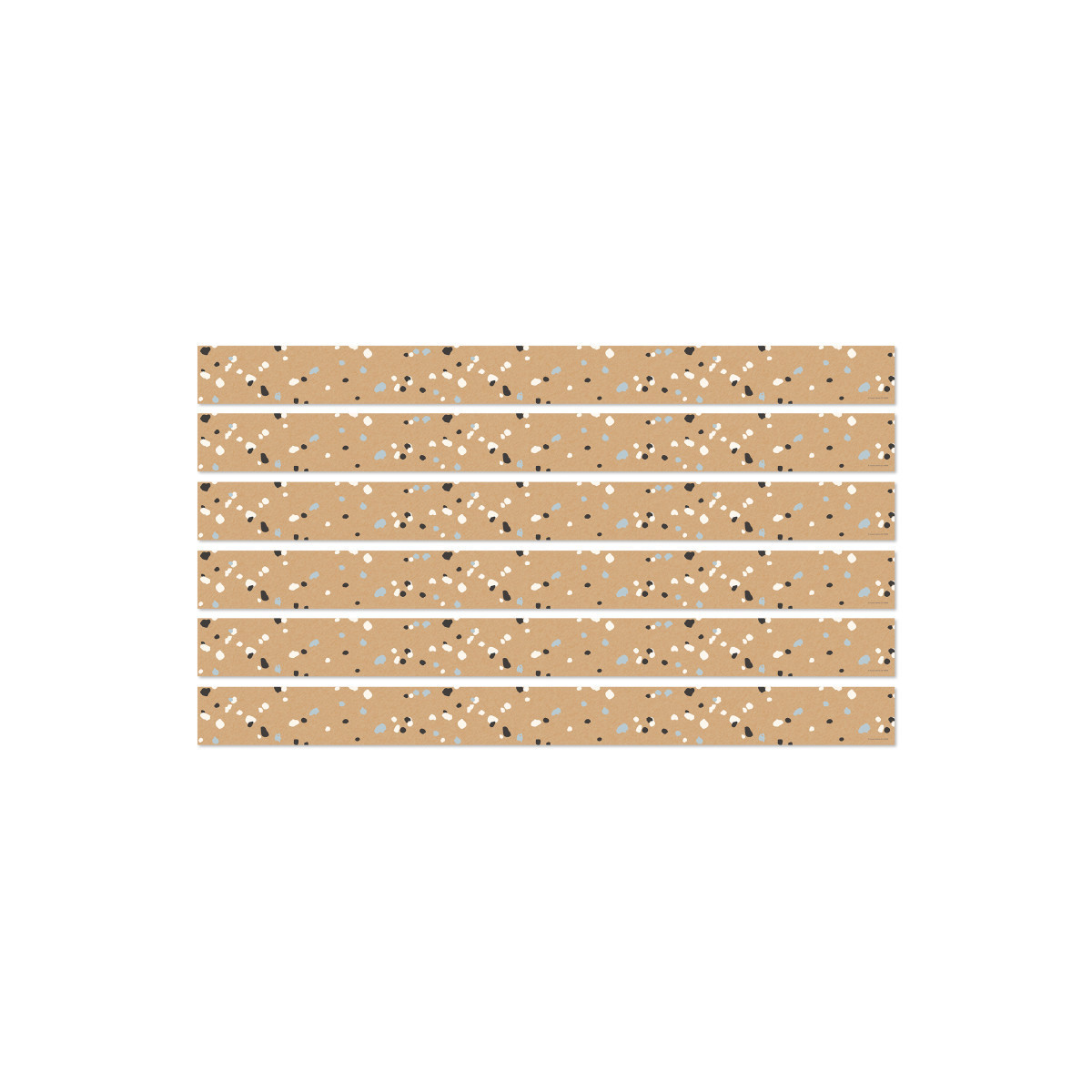 Add natural classroom décor to your learning space using Carson Dellosa We Belong Speckled Kraft Paper Bulletin Board Borders—perfect for bulletin board, white board, cork board, and other classroom décor. Each bulletin board paper set includes 12 strips of straight, natural borders with a colorful, speckled design throughout each strip of border. Each strip of neutral bulletin board border measures 3' x 3" for a total of 36 feet to decorate doors and wall displays, cubbies, chalkboards, and other border needs. Neutral classroom borders are a great addition to year-round party, black board, and bulletin board decorations, office décor, locker, desk décor, and other boho neutral classroom décor. Sold as 6 packs for a total of 72 strips (216 feet).