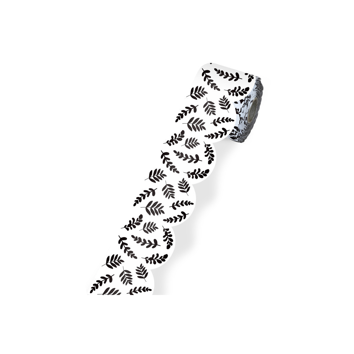 Add the perfect finishing touches to your modern farmhouse décor using Carson Dellosa's Farmhouse Black and White Leaves Bulletin Board Borders. The roll of scalloped, white and black border features a classically chic leafy design and measures 65 feet x 3 inches—perfect for bulletin boards, white boards, cork boards, and other modern farmhouse classroom décor needs. Cut and layer the white and black bulletin board border to add dimension to any display with ease. Add the white and black bulletin board borders to locker and desk décor, and other modern farmhouse classroom décor or office décor for year-round charm that students will love.
