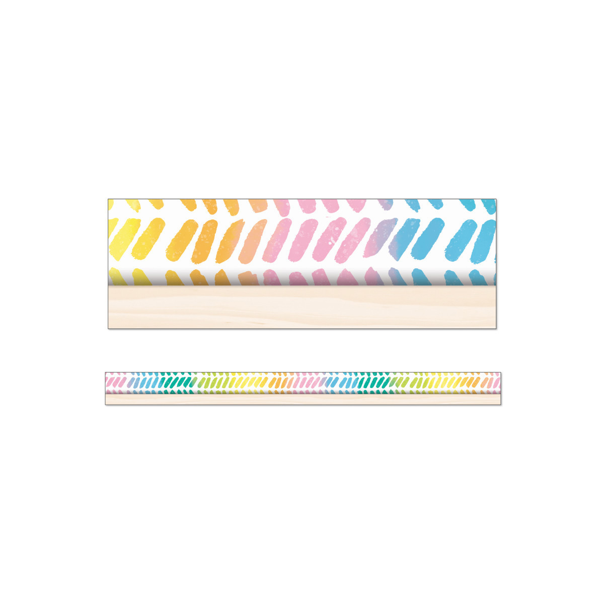 Add a rainbow of color to your learning space using Carson Dellosa Creatively Inspired Watercolor Chevron Rainbow Bulletin Board Borders—perfect for bulletin board, white board, cork board, and other rainbow décor. The neutral classroom borders set includes 12 strips of straight bulletin border with a rainbow chevron design and light wood motif to add to any muted colors classroom theme or boho neutral classroom décor. Boho rainbow classroom borders are a great addition to year-round party, black board, locker, and desk décor, office décor, as well as spring and summer bulletin board decorations. Each strip of bulletin board border measures 3' x 3" for a total of 36 feet for door, cubby, chalkboard, and wall décor that compliments a muted color classroom theme and other boho rainbow classroom décor. The Creatively Inspired collection, designed by Stephanie and Loreal of @HappilyEverElementary, partnered with Carson Dellosa to help create a vibrant, positive, and creative environment that inspires students to learn.