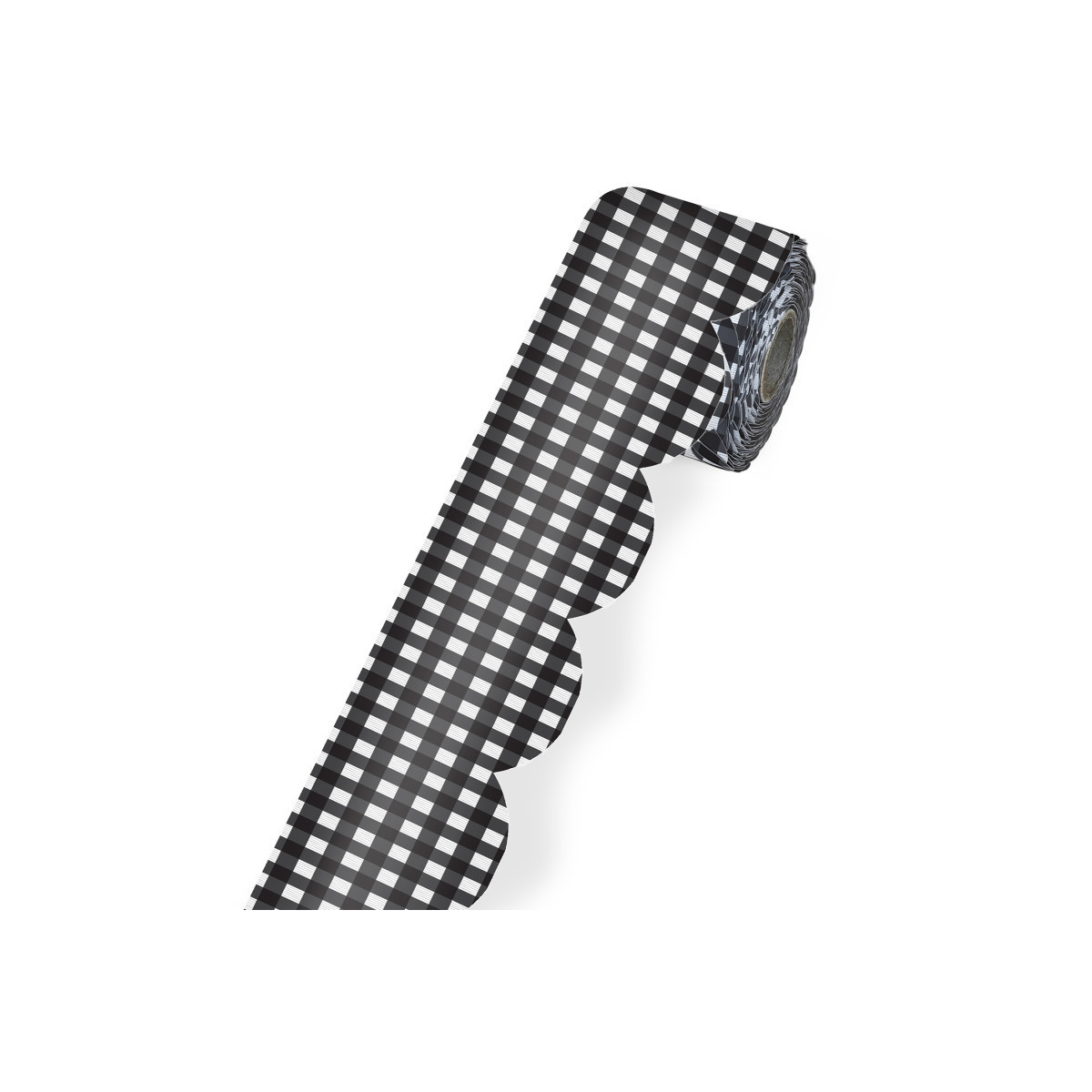 Add the perfect finishing touches to your modern farmhouse classroom using Carson Dellosa's Farmhouse Gingham Black and White Bulletin Board Border! The roll of scalloped, white and black border features a gingham design and measures 65 feet x 3 inches—perfect for bulletin boards, white boards, cork boards, and other modern farmhouse classroom décor needs. Cut and layer the white and black bulletin board border to add dimension to any display with ease. Add the white and black bulletin board borders to locker and desk décor, and other modern farmhouse classroom décor or office décor for year-round style and charm.