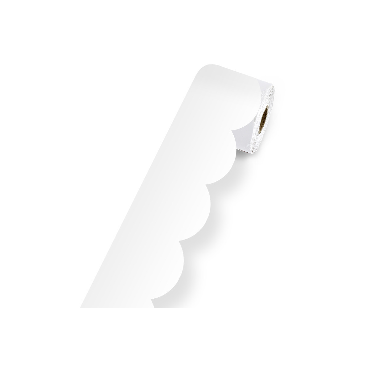 Decorate your space with crisp, white room décor for just about any occasion using the Carson Dellosa White Bulletin Board Borders! Featuring one large, durable 65 ft. x 3 in. roll of scalloped, white bulletin board paper, cut and layer the white bulletin board border to add dimension to any display with ease. Made from durable but flexible white paper, the border is a great way to add classic, white décor to white board, cork board, black board, locker, desk décor, white bulletin board, white classroom décor or office décor—perfect for any occasion and season!