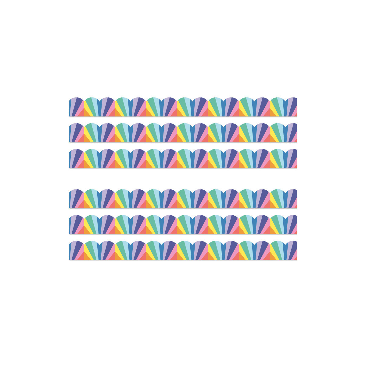 Each pack featuring 13 strips of 3' x 3" scalloped border trim, sold as 6 packs for a total of 78 strips (234 feet)
