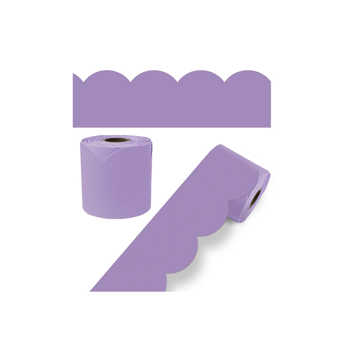 Featuring 65 feet of scalloped, lilac purple bulletin board border