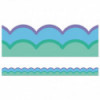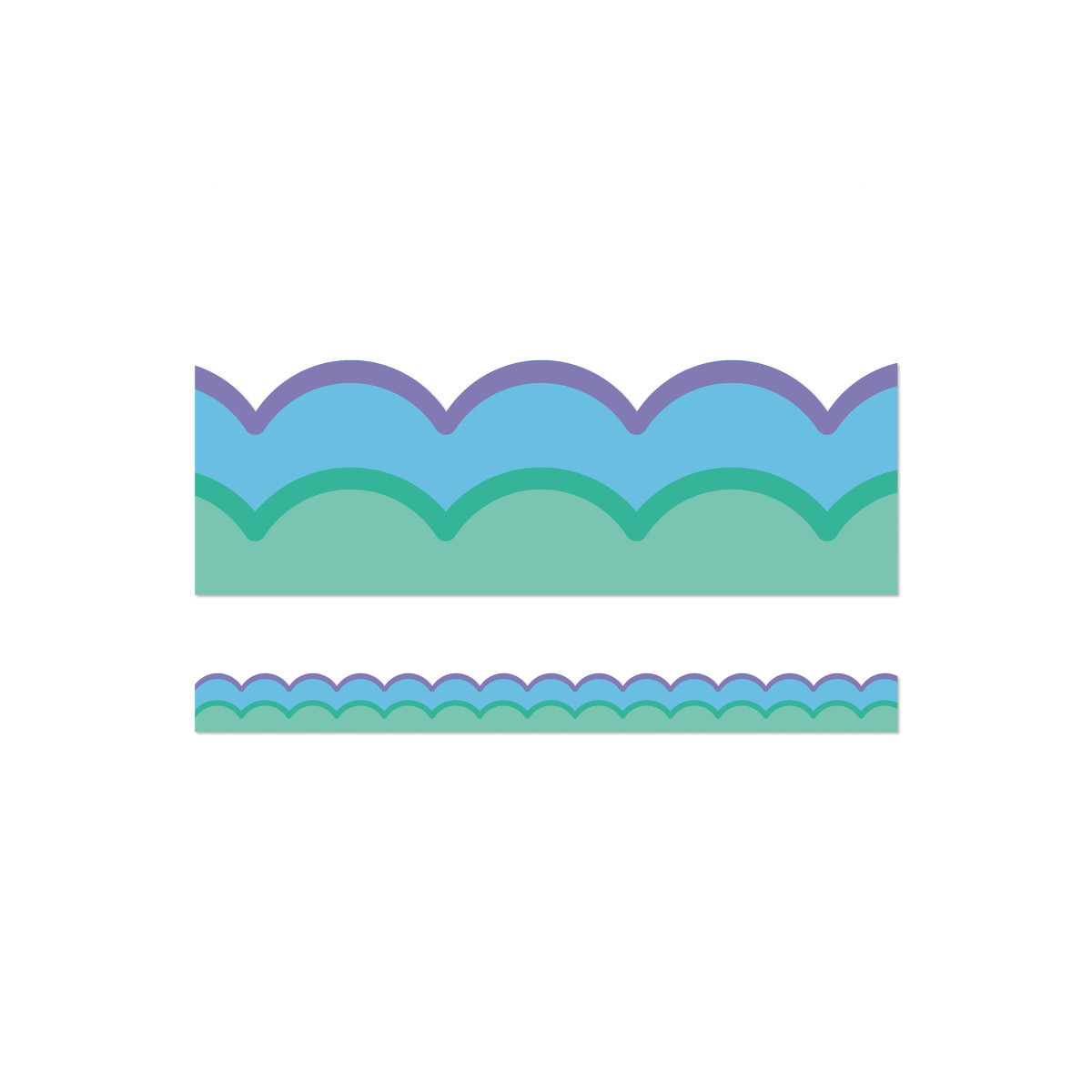 Add a wave of cool colors to your party décor or classroom décor with Retro Remix Cool Waves Bulletin Board Borders! The border trim includes 13 strips of scalloped green and blue bulletin board border with purple and green border outlining each piece. Each strip of border measures 3' x 3" for a total of 39ft to dress up lockers, cubbies, bulletin board, cork board, and white board displays with ease. The classroom border is printed on thick but flexible bulletin board paper that you can cut and layer to add dimension to any display. Retro Remix, designed by Stephanie and Loreal of @HappilyEverElementary, partnered with Carson Dellosa to bring some fun, retro vibes to your learning environment.