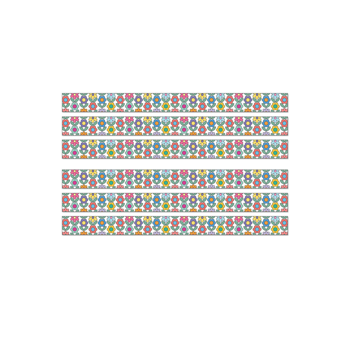 Watch your classroom décor bloom to life with the help of Retro Remix Flower Bulletin Board Borders! Each pack of border includes 12 strips of straight bulletin board border with a vibrant floral design on each border trim. Each strip of groovy border measures 3' x 3" for a total of 36ft per pack to dress up lockers, cubbies, bulletin board, cork board, and white board displays with ease. The classroom border is printed on thick but flexible bulletin board paper that you can cut and layer to add dimension to any display. Retro Remix, designed by Stephanie and Loreal of @HappilyEverElementary, partnered with Carson Dellosa to bring some fun, retro vibes to your learning environment. Sold as 6 packs for a total of 72 strips (216 ft).