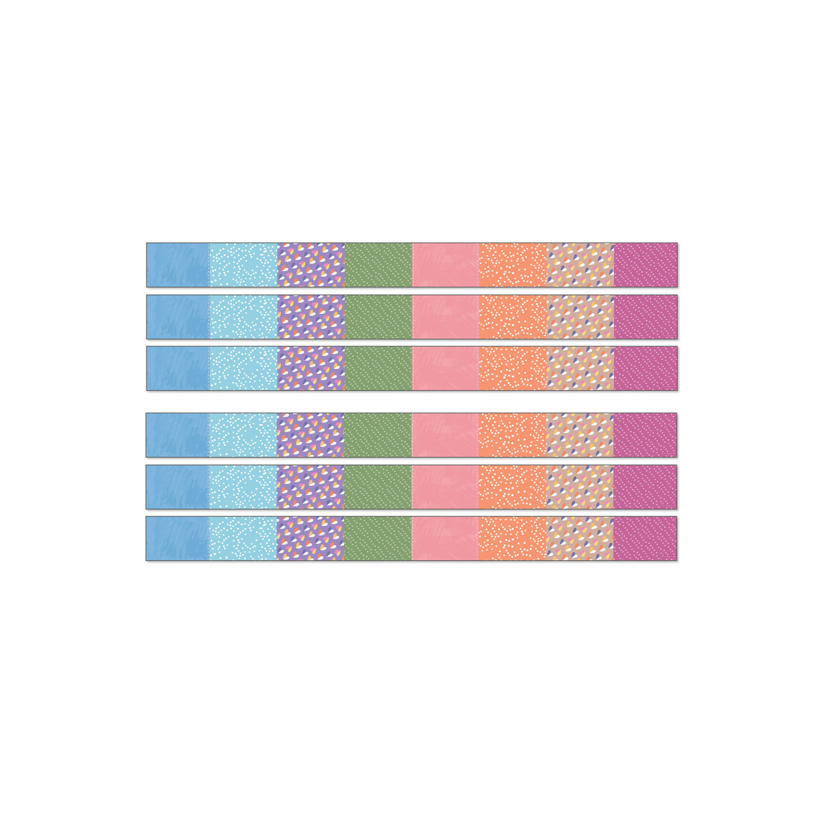 Enhance your classroom décor with seamless style using Carson Dellosa's Crafty and Cool Patchwork Bulletin Board Borders! Each pack of border includes 12 strips of bulletin board border with an assortment of colorful quilt designs on each border trim, making it the perfect addition to farmhouse decor, and arts and crafts spaces! Each strip of border measures 3' x 3" for a total of 36ft per pack to dress up lockers, cubbies, bulletin board, cork board, and white board displays with ease. The classroom border is printed on thick but flexible bulletin board paper that you can cut and layer to add dimension to any display. Sold as 6 packs for a total of 72 strips (216 ft).