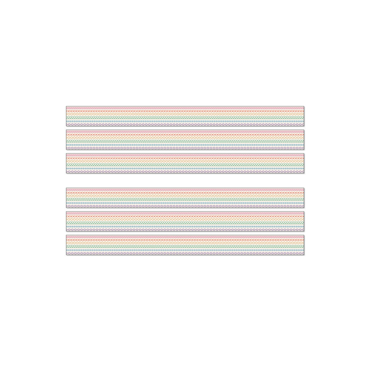 Add a rainbow of color to your classroom decor by decorating your learning space with Carson Dellosa's Crafty and Cool Rainbow Stitch Bulletin Board Borders! Each pack of border includes 12 strips of bulletin board border with a boho rainbow stitch design on each border trim. Each strip of rainbow bulletin board border measures 3' x 3" for a total of 36ft per pack to dress up lockers, cubbies, bulletin board, cork board, and white board displays with ease. The classroom border is printed on thick but flexible bulletin board paper that you can cut and layer to add dimension to any display. Sold as 6 packs for a total of 72 strips (216 ft).