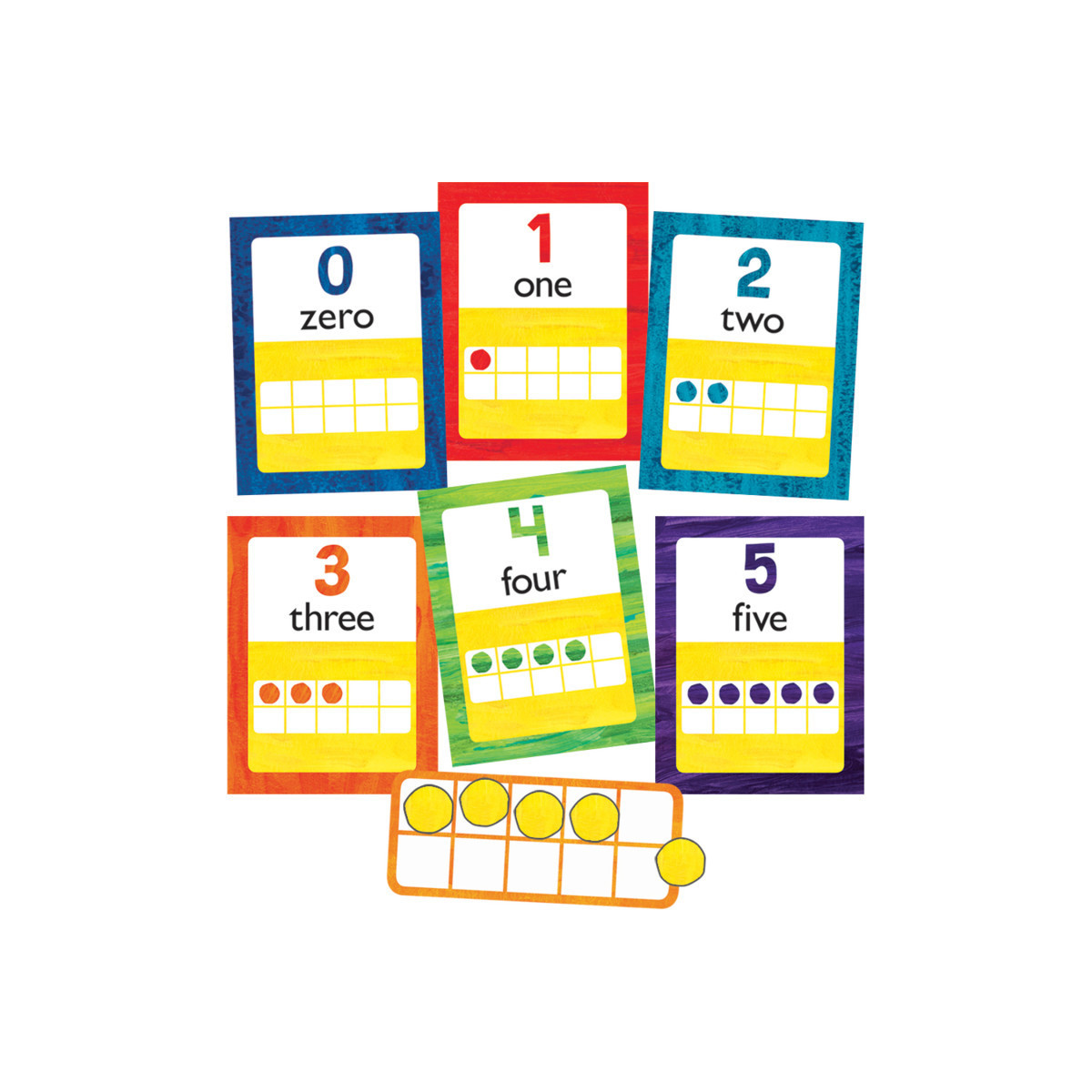 Reinforce concepts year-round with the 43-piece World of Eric Carle™ Numbers 0–20 Bulletin Board. This set includes the following pieces: • 21 number cards (8 1/2" x 11 1/2")