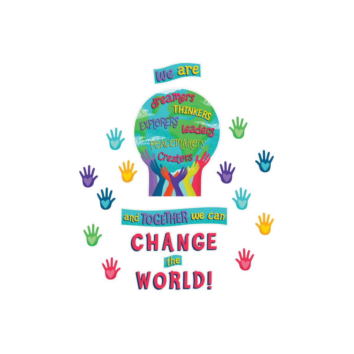 The inspirational text and lively art of this set will instill student confidence and classroom unity as they read the message: Together We Can Change the World!